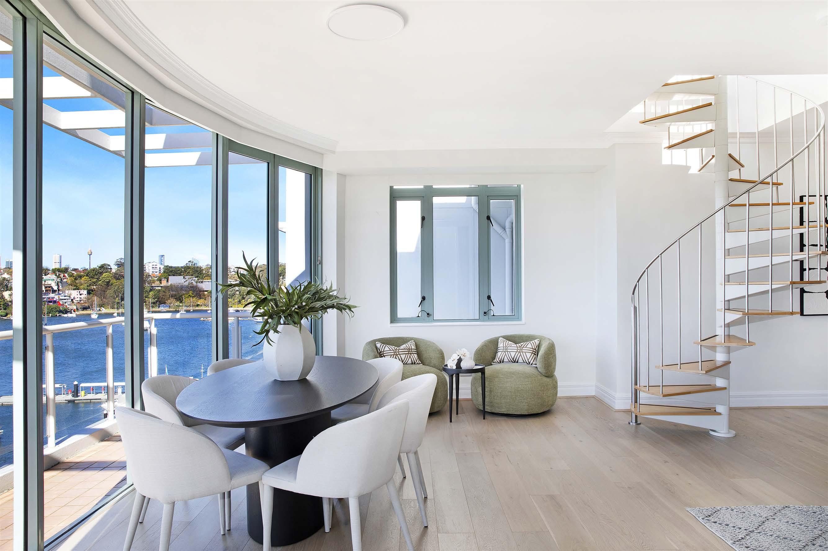 Situated on Drummoyne's coveted east side in a harbourside setting footsteps from the foreshores, this sundrenched penthouse enjoys an elevated waterfront reserve aspect. The apartment showcases spectacular views over neighbouring parklands & the water to the city & northern skylines, with a lengthy balcony & rooftop terrace providing generous alfresco areas for both entertaining & soaking up the breathtaking outlook. Offering a remarkable 210sqm of indoor/outdoor living plus secure double parking.