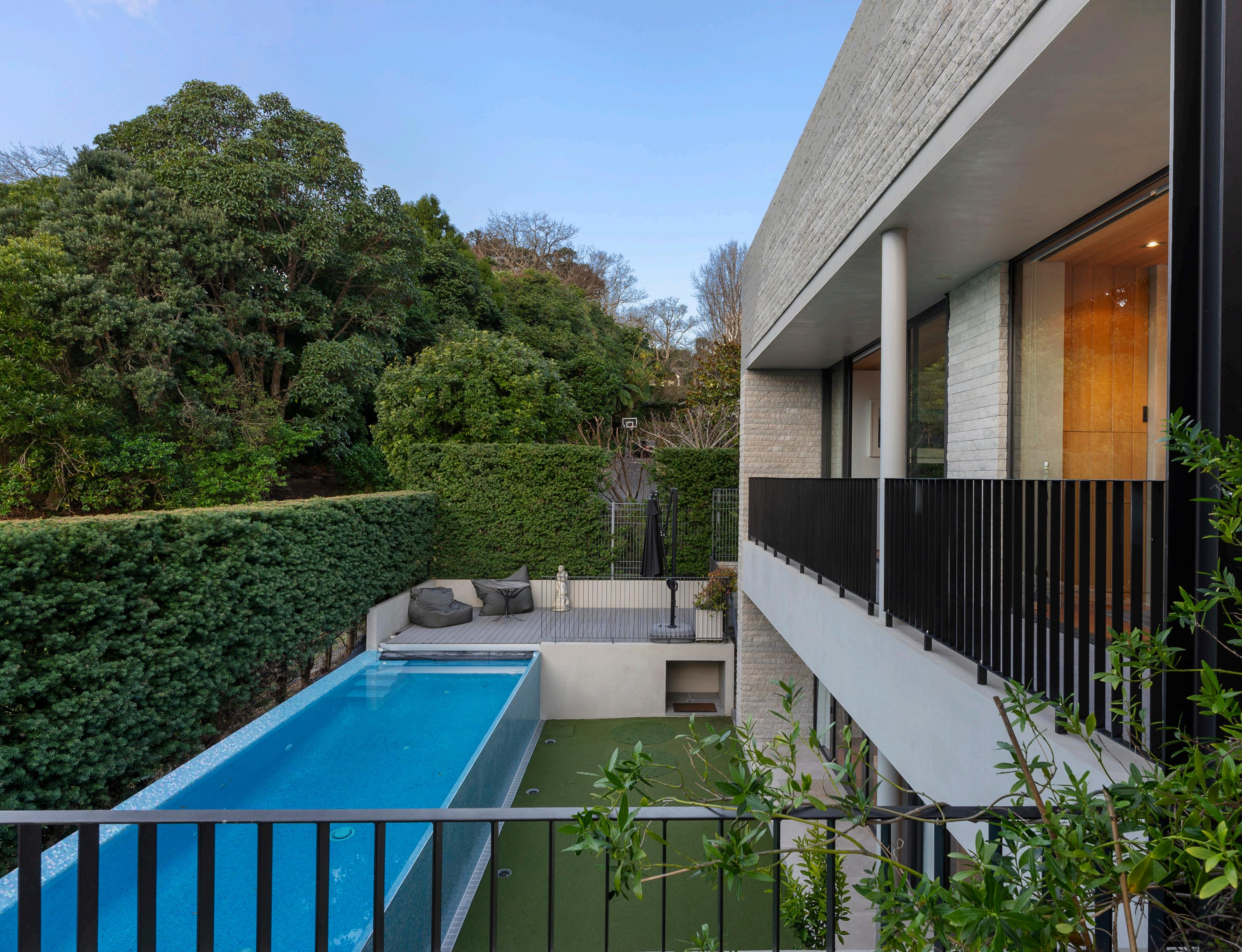 Sporting a rich, carefully considered mixture of textures and finishes due to unique materials such as Hinuera stone, native totara and custom-sourced Turkish brickwork, the residence conveys a sense of grandeur that mingles effortlessly with an organic warmth due to its leafy surrounds and proximity to the coast.