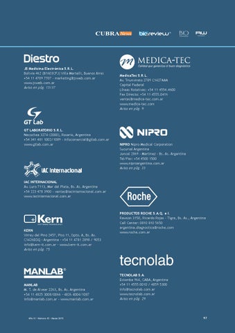 TECNOLAB S.A. Estomba 964, CABA, Argentina +54 11 4555 0010 / 4859 5300 info@tecnolab.com.ar www.tecnolab.com.ar Aviso en pág. 29