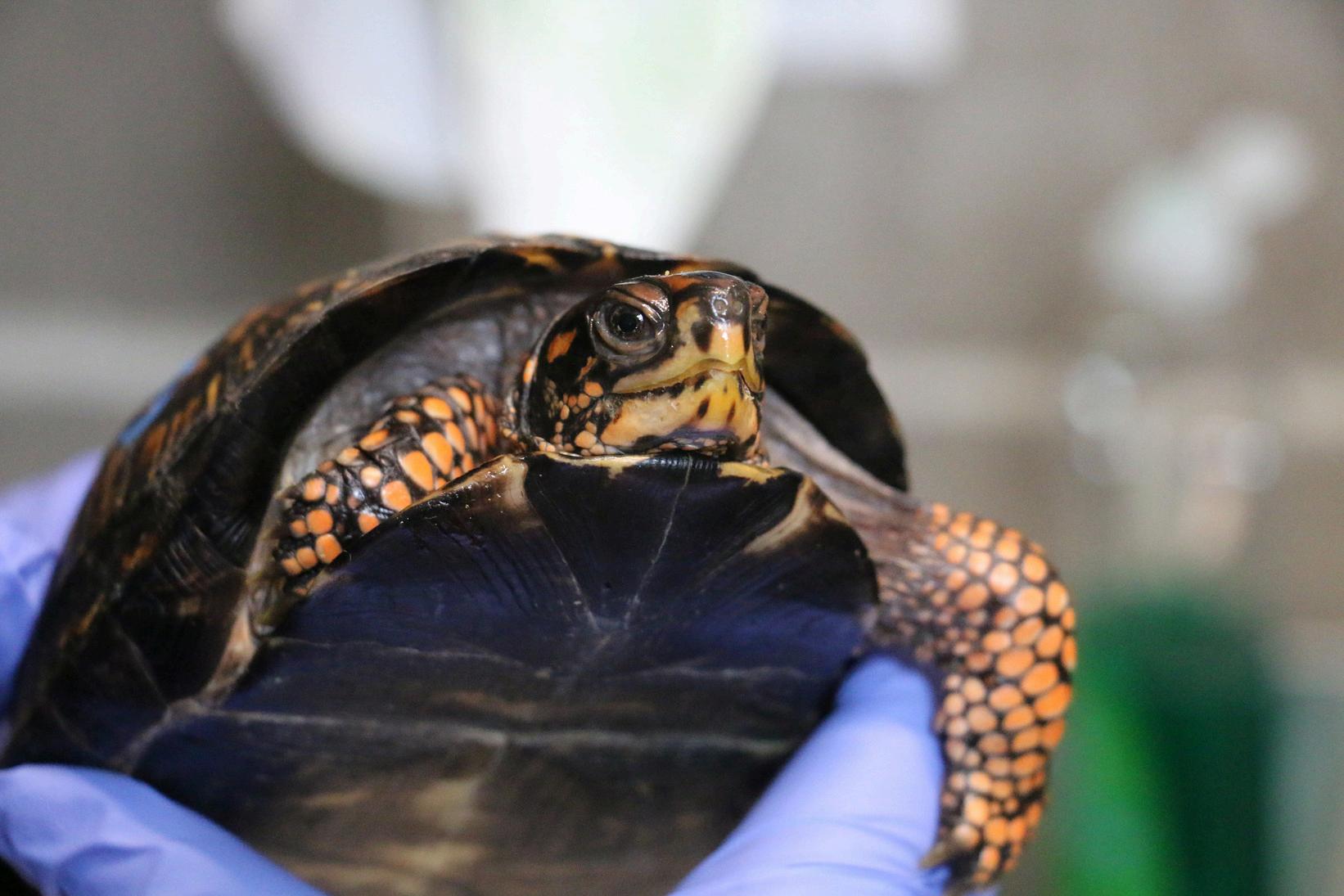 In 2025, the Zoo received ten Gulf Coast box turtles from a wildlife confiscation case. The turtles were placed in the quarantine facility for health monitoring and disease screening. During this period, the veterinary team identified that several turtles were gravid