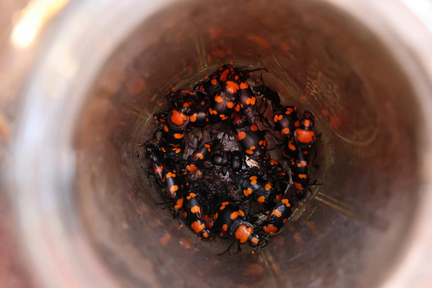 The Zoo also initiated a new research study during the late summer trapping in collaboration with SUNY College of Environmental Science and Forestry Beetles were swabbed for lab testing and also provided a small elytra clipping for stable isotope analysis. This analysis reveals the beetle's lifetime diet, including the larval stage. Comparing the two methods will determine if swabbing is a more cost-effective and less invasive alternative for identifying the species' carrion choice for reproduction.