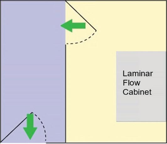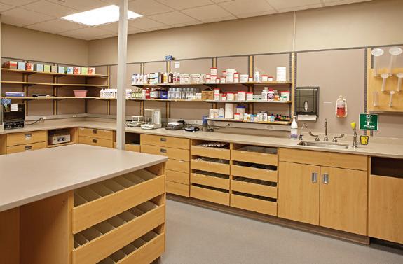 • Each compounding room comes equipped with two 4' wide biosafety cabinets and/or two 4' wide laminar flow hoods.