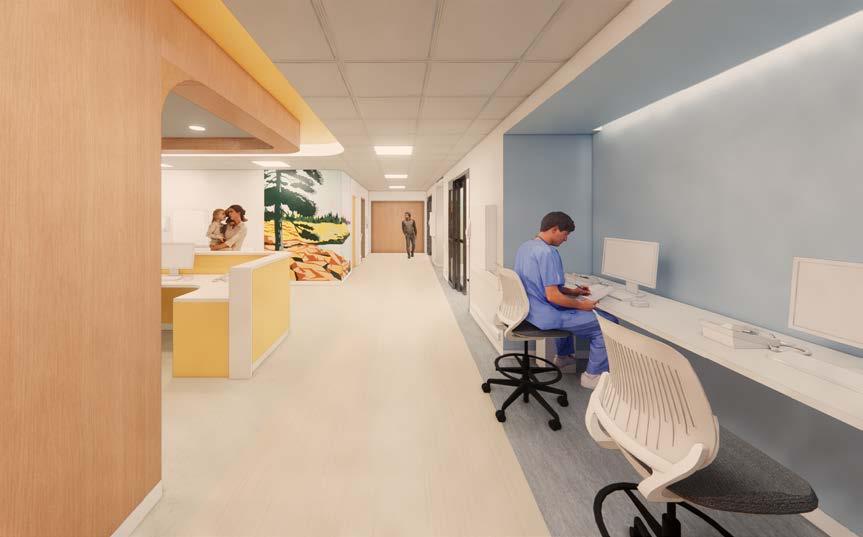 The renovation of the Limited Stay Unit at Children's Minnesota includes 9,000 SF of the first floor of the Children's Hospital in Minneapolis. Originally built as a Pediatric Intensive Care Unit in the 1990's, the existing space was tight and the infrastructure had to be completely remodeled with fully engineered MEP to meet to new needs of the specialty unit. The remodel includes six observation units and eight inpatient rooms for overnight stays, a family lounge and children's play area.