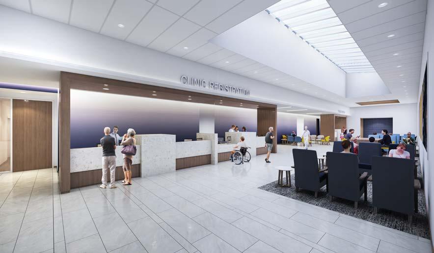 Graphics and large-scale artwork can play a major role in creating highimpact healthcare interior environments. When implementing positive distractions within spaces that aid life's most critical moments, graphics can help support storytelling, and different strategies can reinforce overall navigation and the care of intergenerational patient populations and their specific needs.