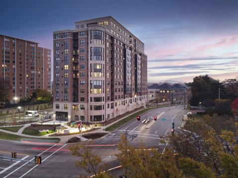 In collaboration with operator American House, this four-story, 170unit community will offer independent and assisted living along with memory care housing options in Naperville. Adjacent to the Springbrook Prairie Pavilion shopping district, residents will have access to a grocer and various retail stores. Anticipated to open Summer 2025, this 182,000 SF community will feature outdoor dining along with a double-height space across from the lobby that opens up to the courtyard allowing residents and visitors to view the beautiful and activated recreational outdoor area as soon as they enter the building. Additional amenities include dining and bistro restaurants, fitness room, library, salon, theater, parking and walking and biking paths.