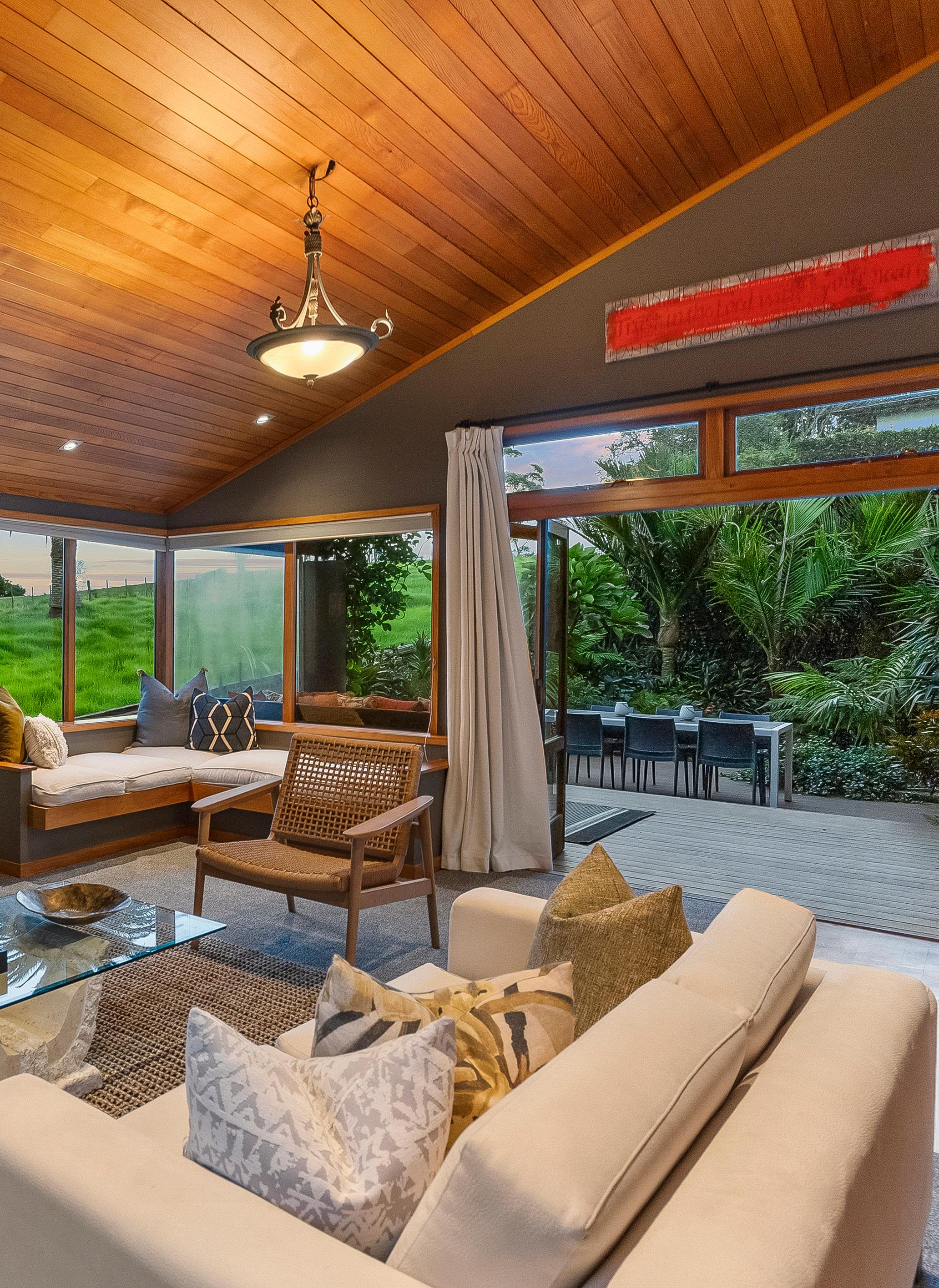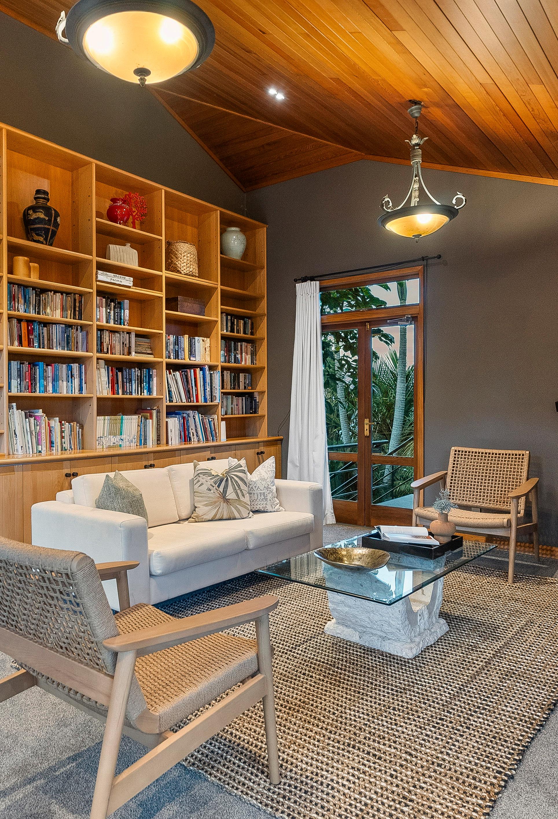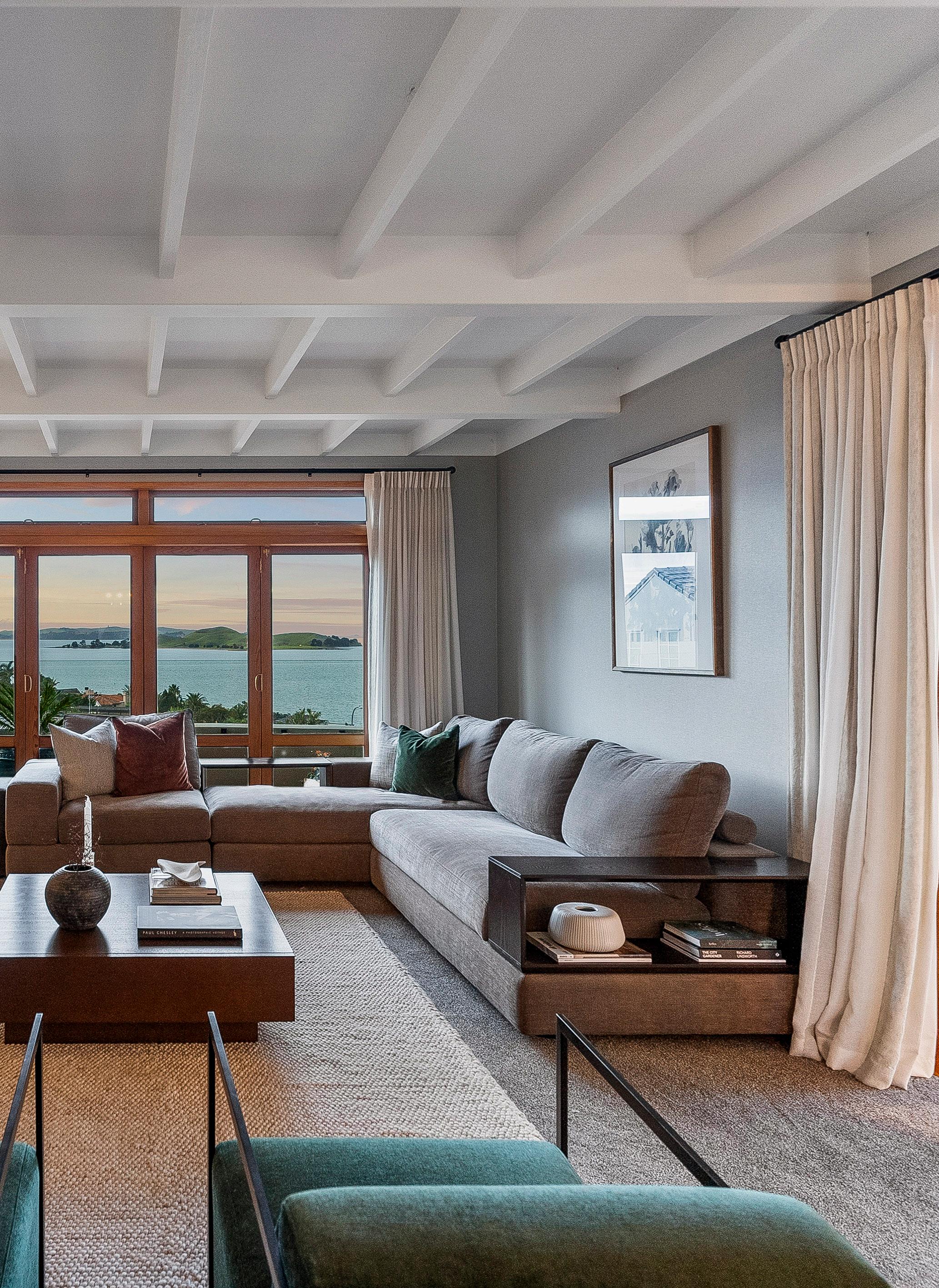 The generous open living is divided into separate spaces with split levels offering separation for the family. The top floor comprises of the master suite plus office delivering some of the best views Auckland has to offer, looking out over the harbour and park.