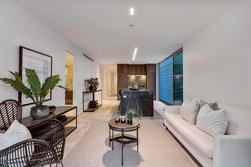 This sophisticated brand-new townhouse is nestled within a leafy street and has been designed to complement life in the seaside suburb of Mission Bay.