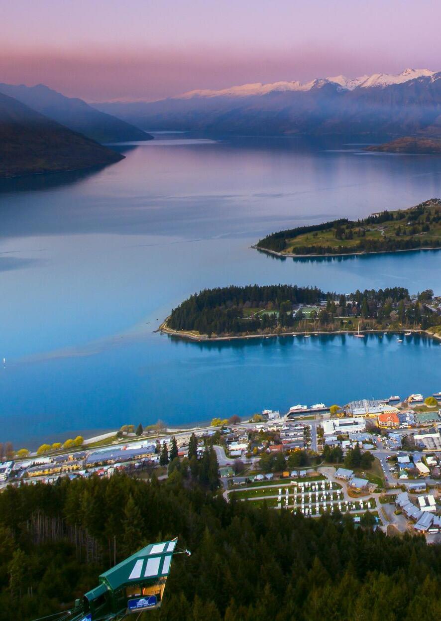 • Elevated views up the Shotover River toward Arthur's Point and around to Coronet Peak