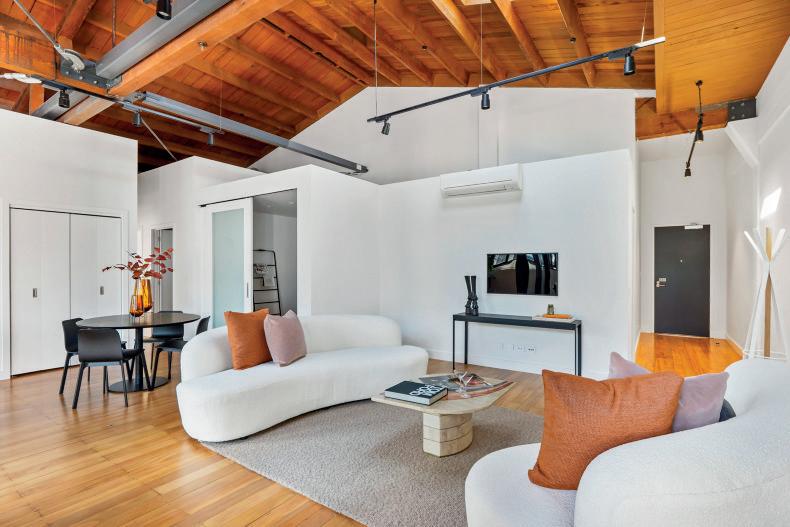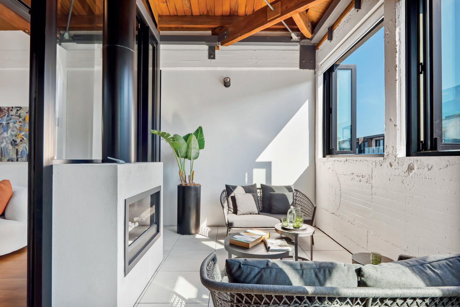 The glass sliders open to offer the ultimate indoor-outdoor experience, with the living space and bedroom flowing out onto a generous sun-drenched deck, which features a woodburning fireplace, and a covered breezeway where you can dine al fresco.