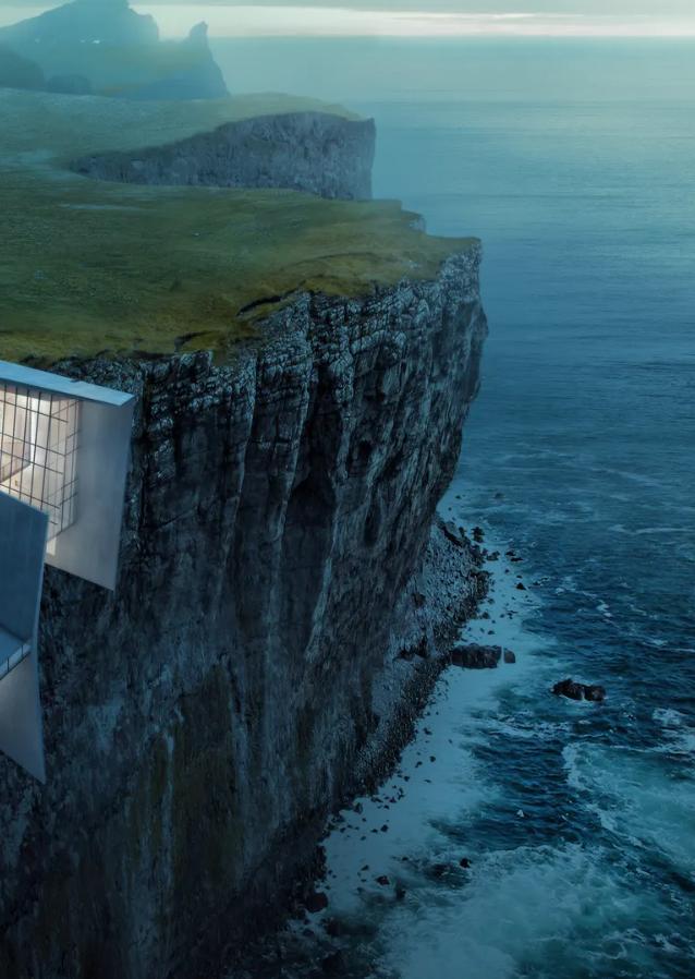 Though not realized yet, Alex Hogrefe of Visualizing Architecture designed this home to examine “the insertion of architecture into a sensitive landscape,” he told Toromanoff. Retreat, envisioned to grip the edge of a cliff in Iceland, becomes an extension of the natural environment.