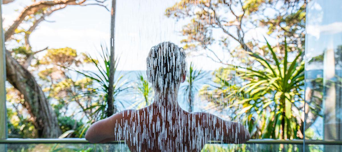 Nestled intimately amongst native ancient Pohutukawa and with staggering views over-looking the peninsula, stands a resort-like one-bedroom sanctuary of exquisite quality named The Glasshouse.