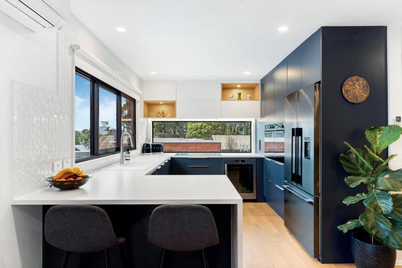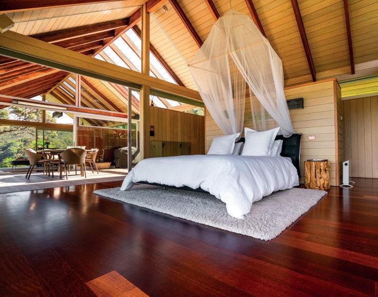 Architecturally designed by Paul Clarke, the home boasts floor-to-ceiling glass sliders which allow an abundance of natural light to enter the home and make you feel im-mersed in the wilderness.