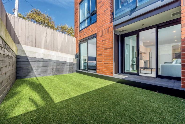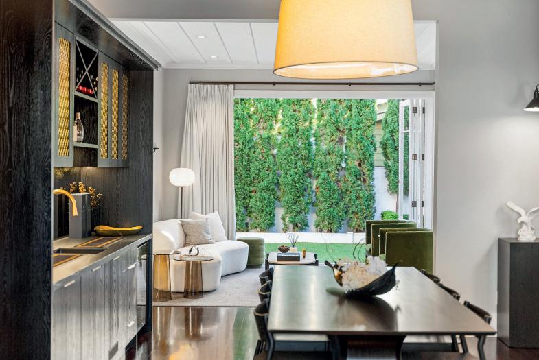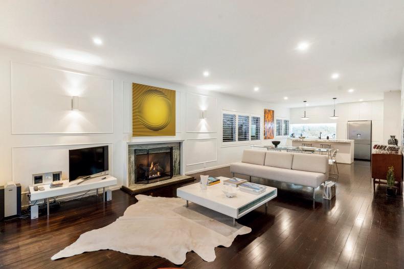 • Sunken living with spacious vaulted ceilings and glass doors flowing outside to the private garden