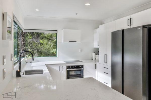 Escape from the city to a private and beautifully renovated Titirangi haven that gets better from every angle. Spread across two thoughtfully modernised levels, this 1990s property was reclad with a cavity in 2005 and its recent makeover using carefully selected, high quality materials has resulted in a stylish modern aesthetic that effortlessly combines luxury with practicality.