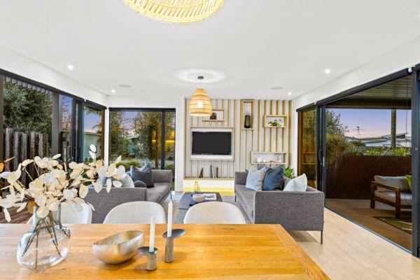 Delivering 540m2 of internal sprawling covered terraces the views over the green valley to Rangitoto and the harbour entranceway sets the scene