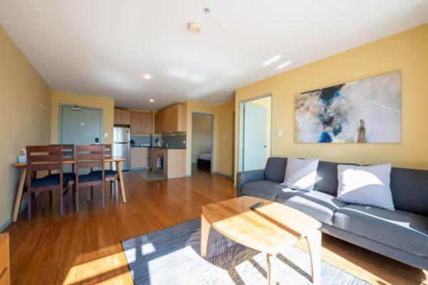 Recently updated, the architect designed kitchen and laundry area includes ample storage and external access to the sheltered courtyard. The dining area features a large wall ideal for your special painting or artwork, and the sunken living area makes for a cosy retreat. There are heated tiled floors throughout this level and a heat pump to ensure warmth over winter months.