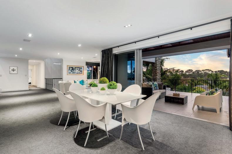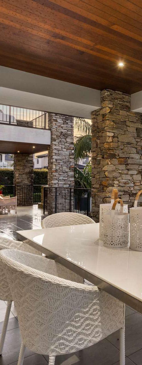 internal living area and 178m2 of the elevated position enjoys valley of native trees and palms harbour beyond. The grand stone scene for things to come with its double-height void and stairway.