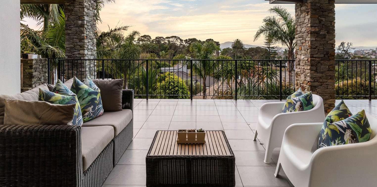 The main living level offers an open plan living area with multiple lounge and family room spaces opening off it. The extensive, covered terraces run the full length of the home and look over the pool and lawn to the views beyond, with a cosy outdoor stone fireplace, there is plenty of space for entertaining.