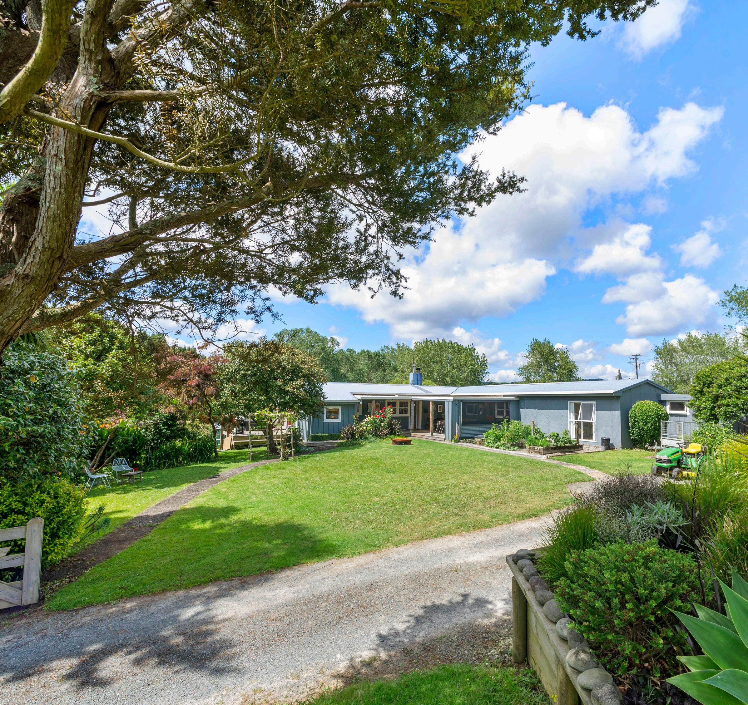 This light filled home is north facing with all day sun. The large family living area and 4 bedrooms plus a study all look out over mature trees and gardens. The 5.4ha has 7 fenced paddocks, a well established orchard, mature native trees, raised vegie beds, a chicken run and stream.
