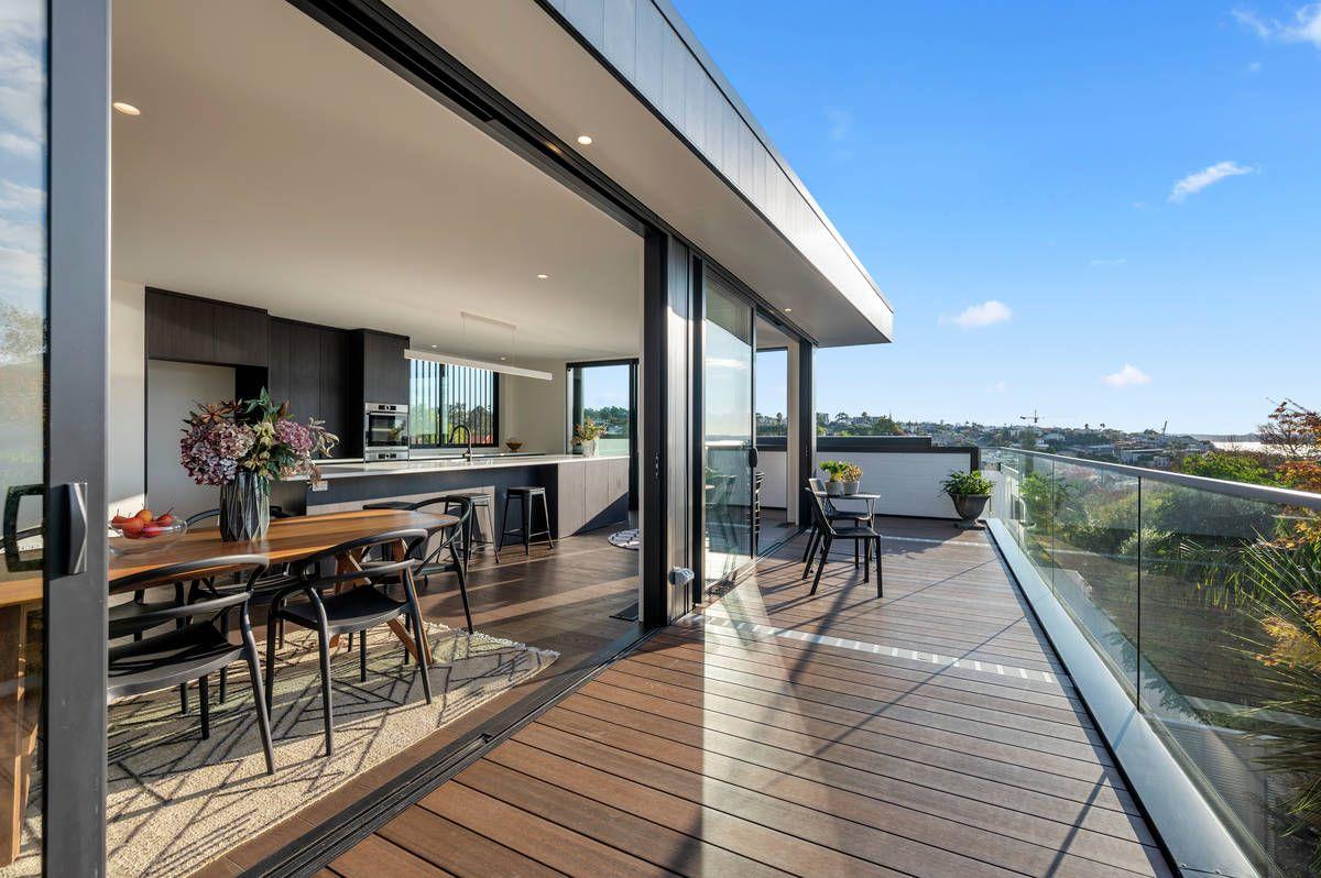 Boasting panoramic sea views from its wraparound balcony this brand-new, high-end build gives a crisp, contemporary feel that is fit for executive families. You won't want to miss out on viewing 15B Ngake Street to see why it won the Auckland/Northland ADNZ Resene Architectural Design Award. The design creates spaces filled with natural light.