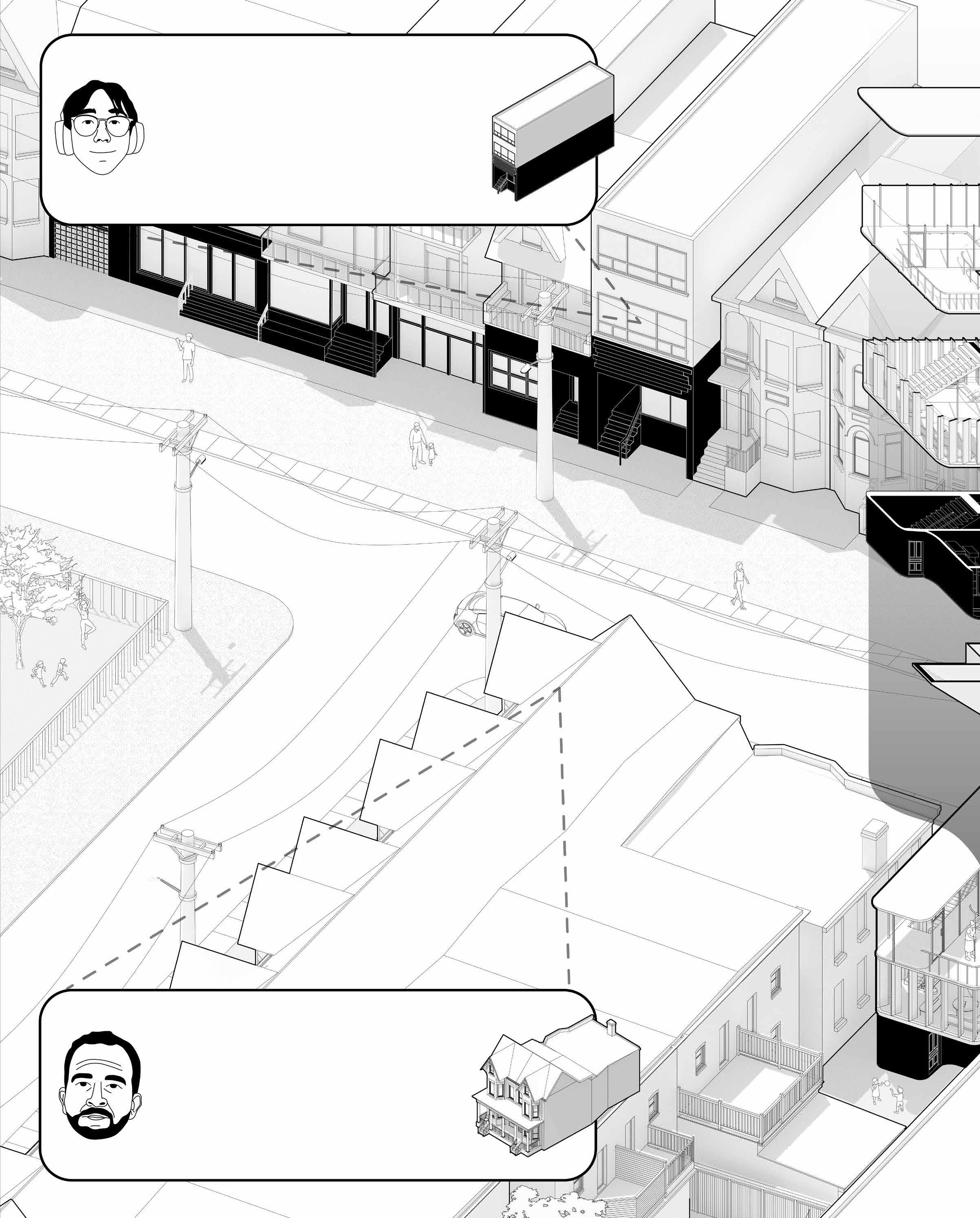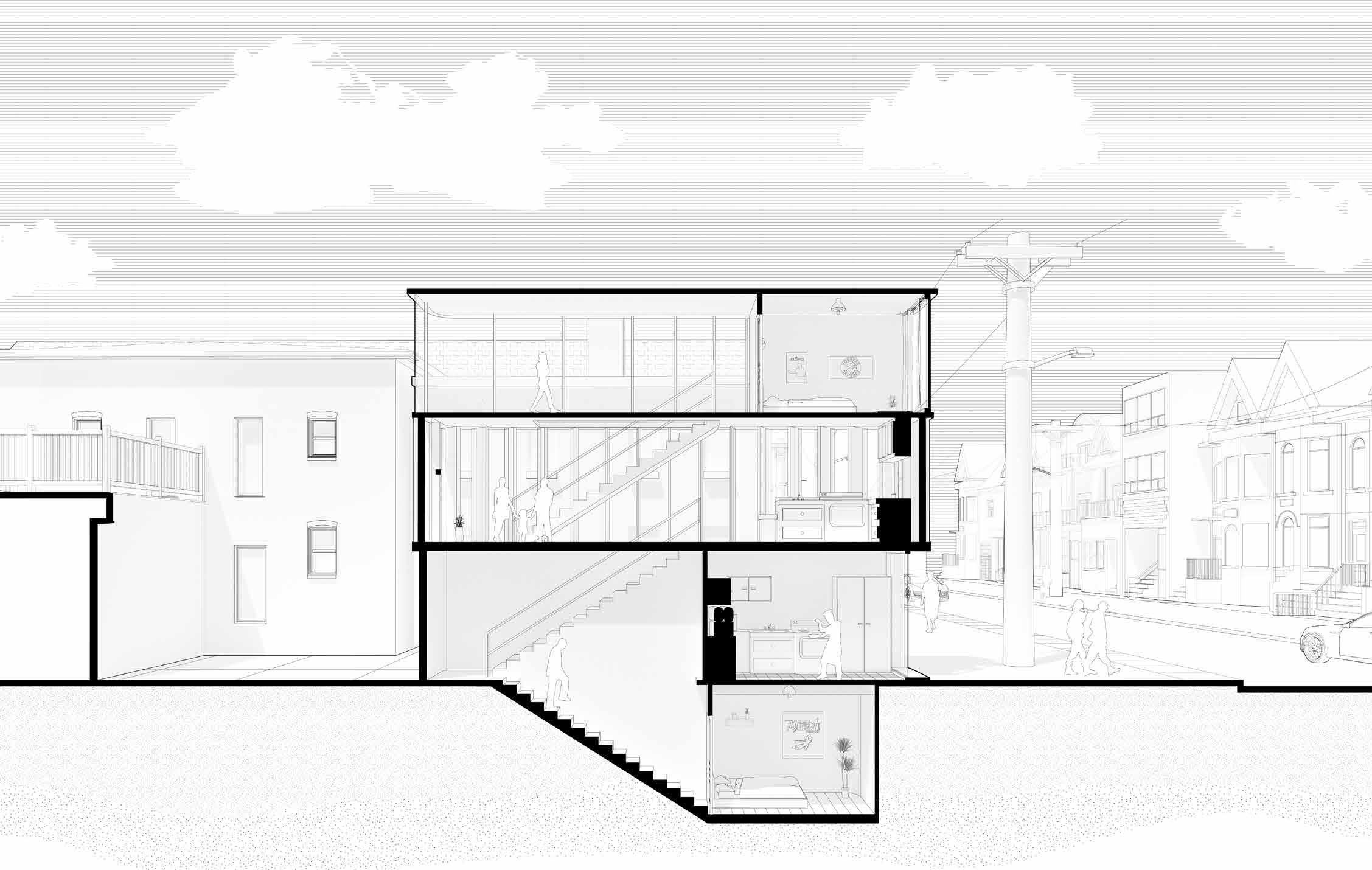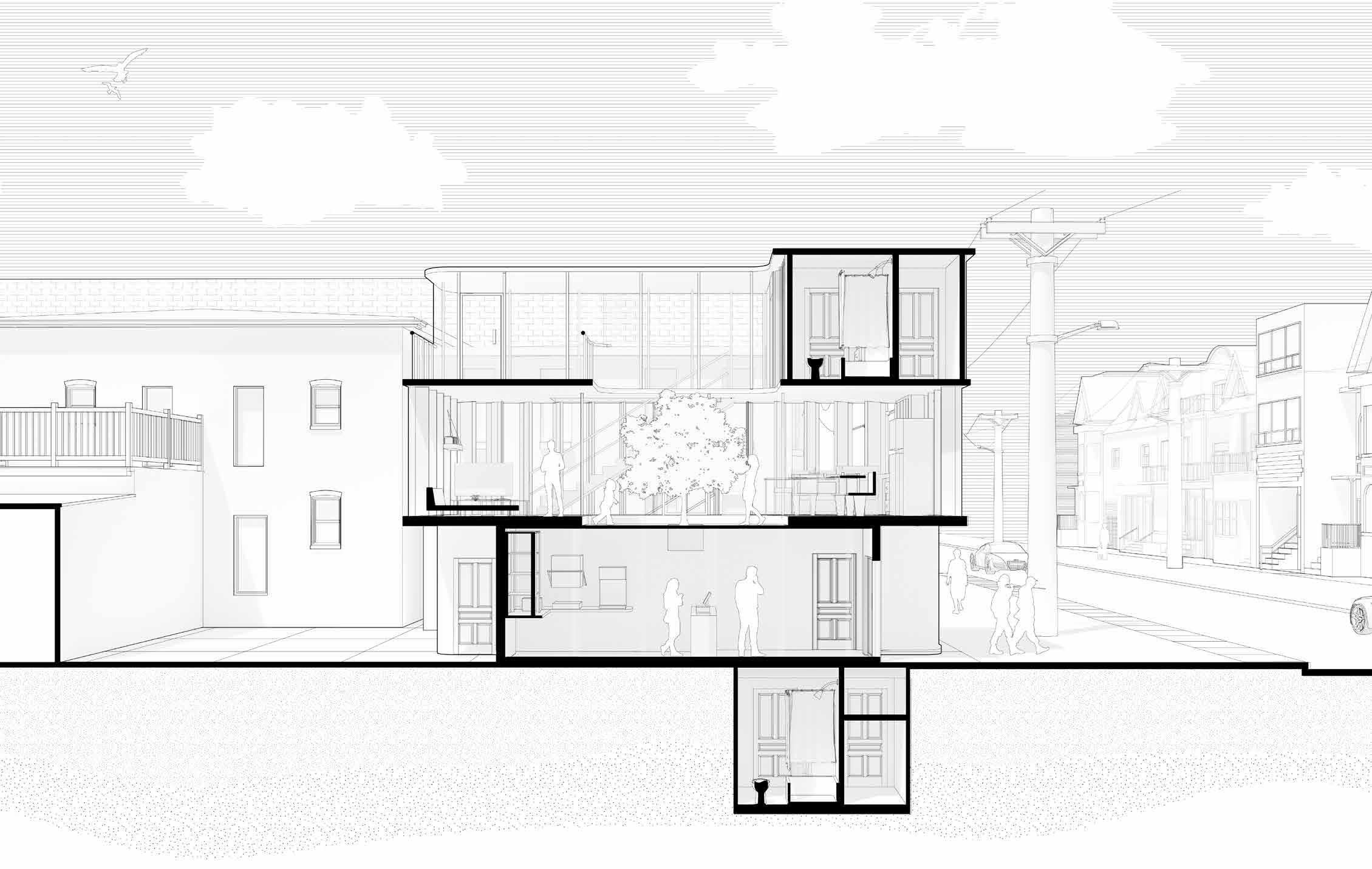 Site: The house is located near Chinatown and Kensington. The house follows the common program of Kensington’s mixed-use houses while the house caters to the predominant Chinese population. The facade can create privacy while allowing sunlight according to the sun paths of Toronto.