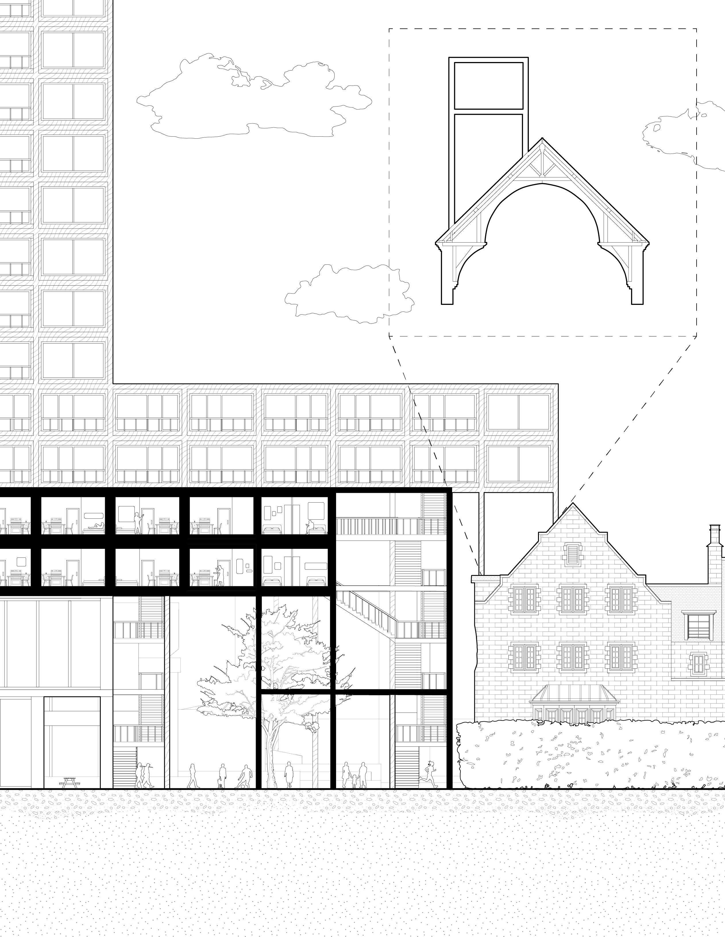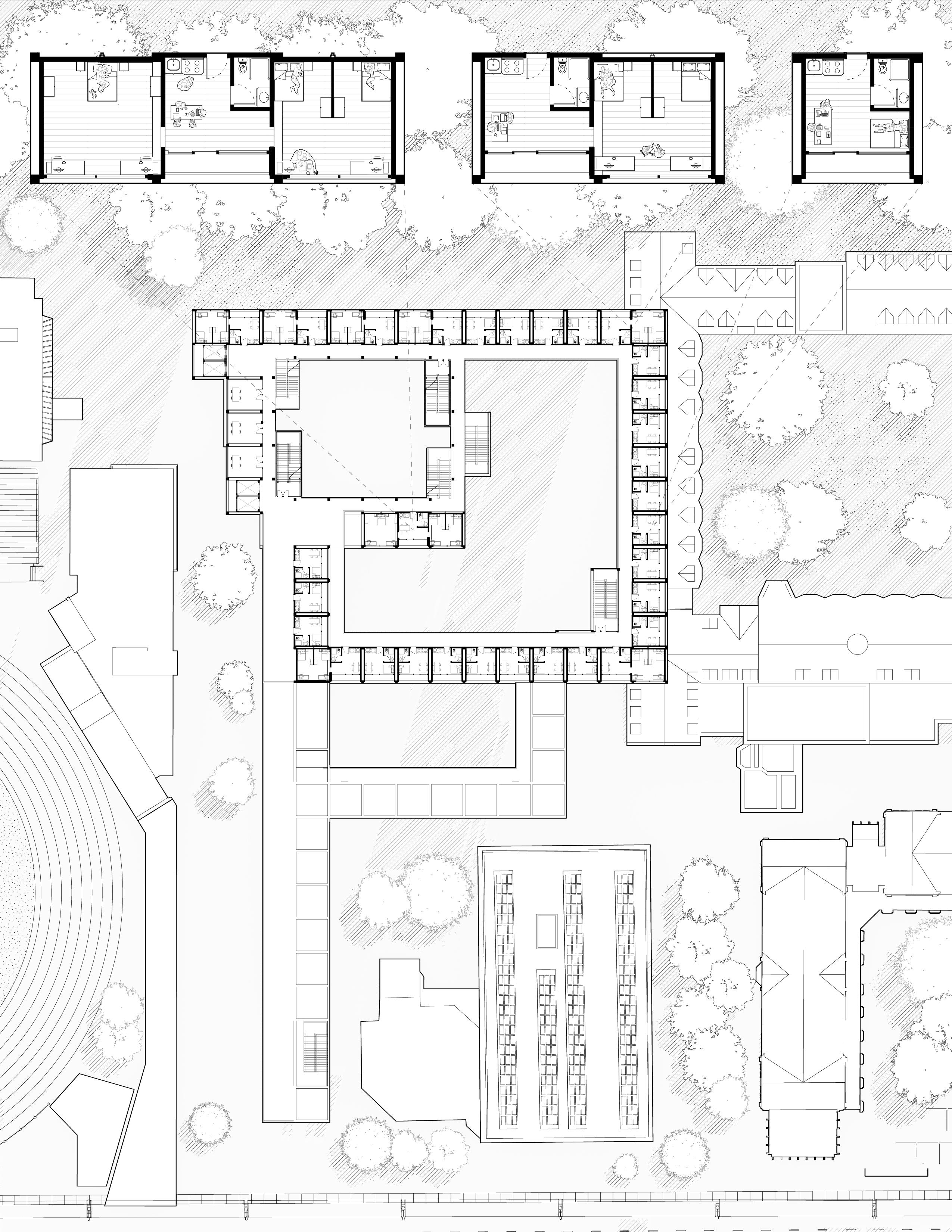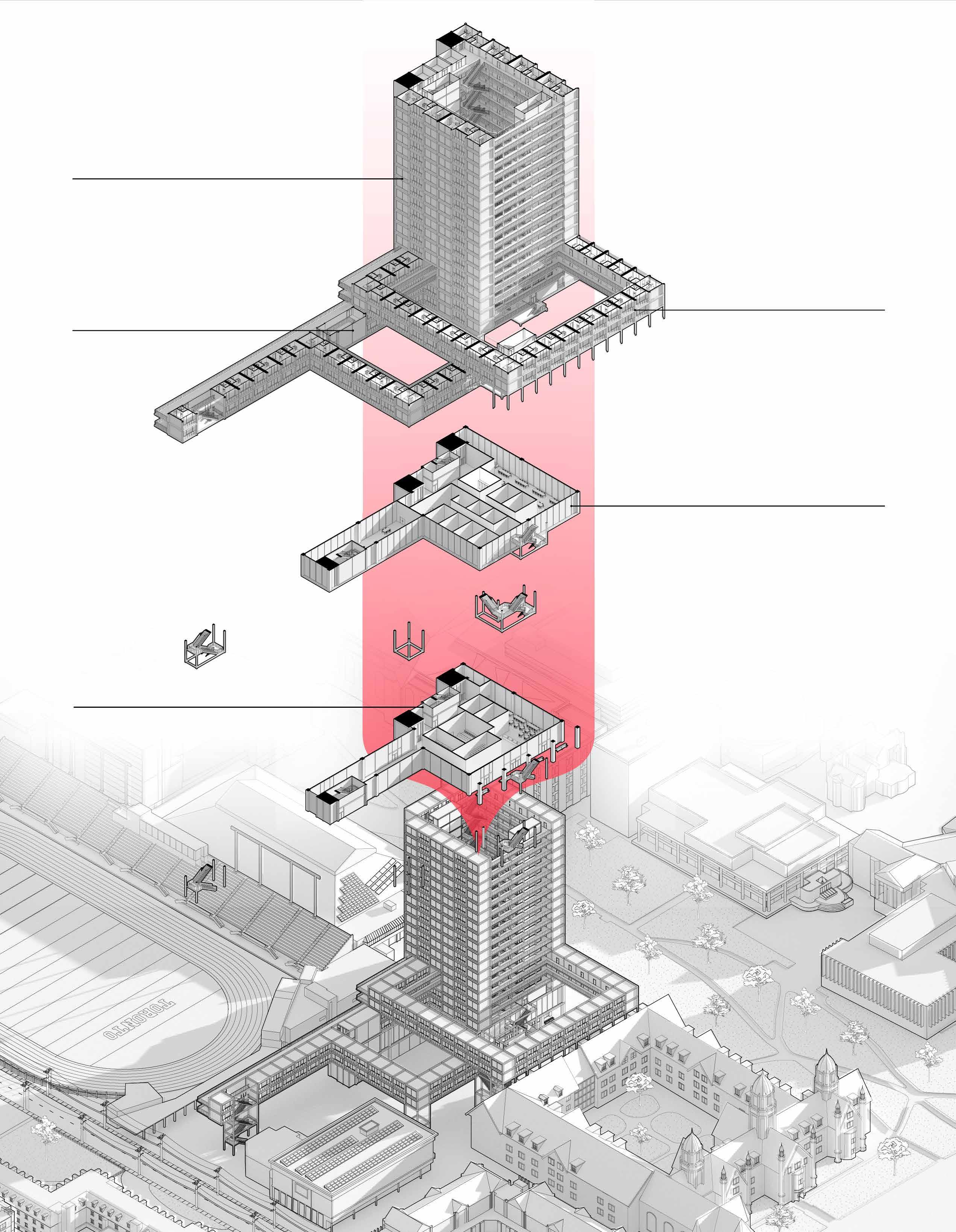 As international students need a temporary place to live in Toronto, the modular design allows for flexibility and change. Through the integration of modular units, the building connects with Trinity College which brings the two student residences together helping students make new friends.