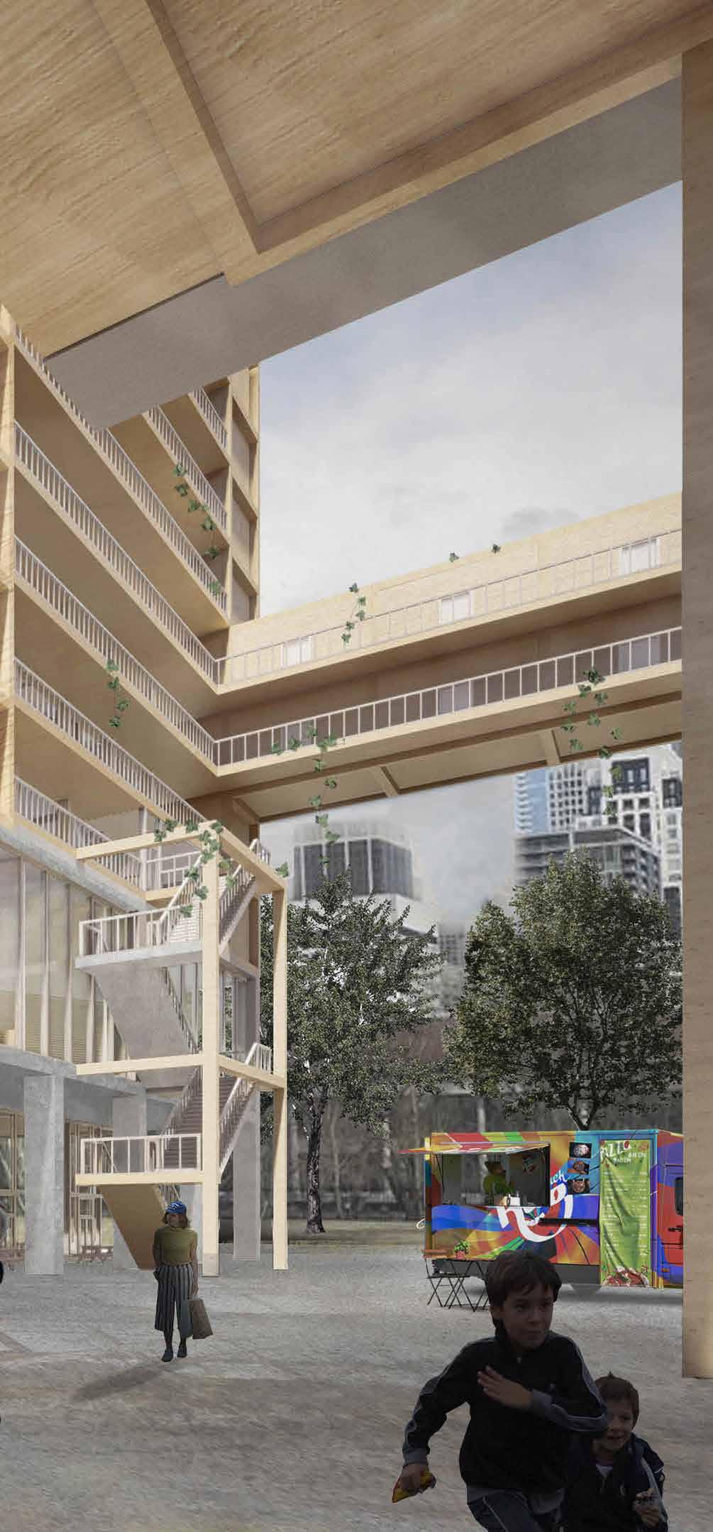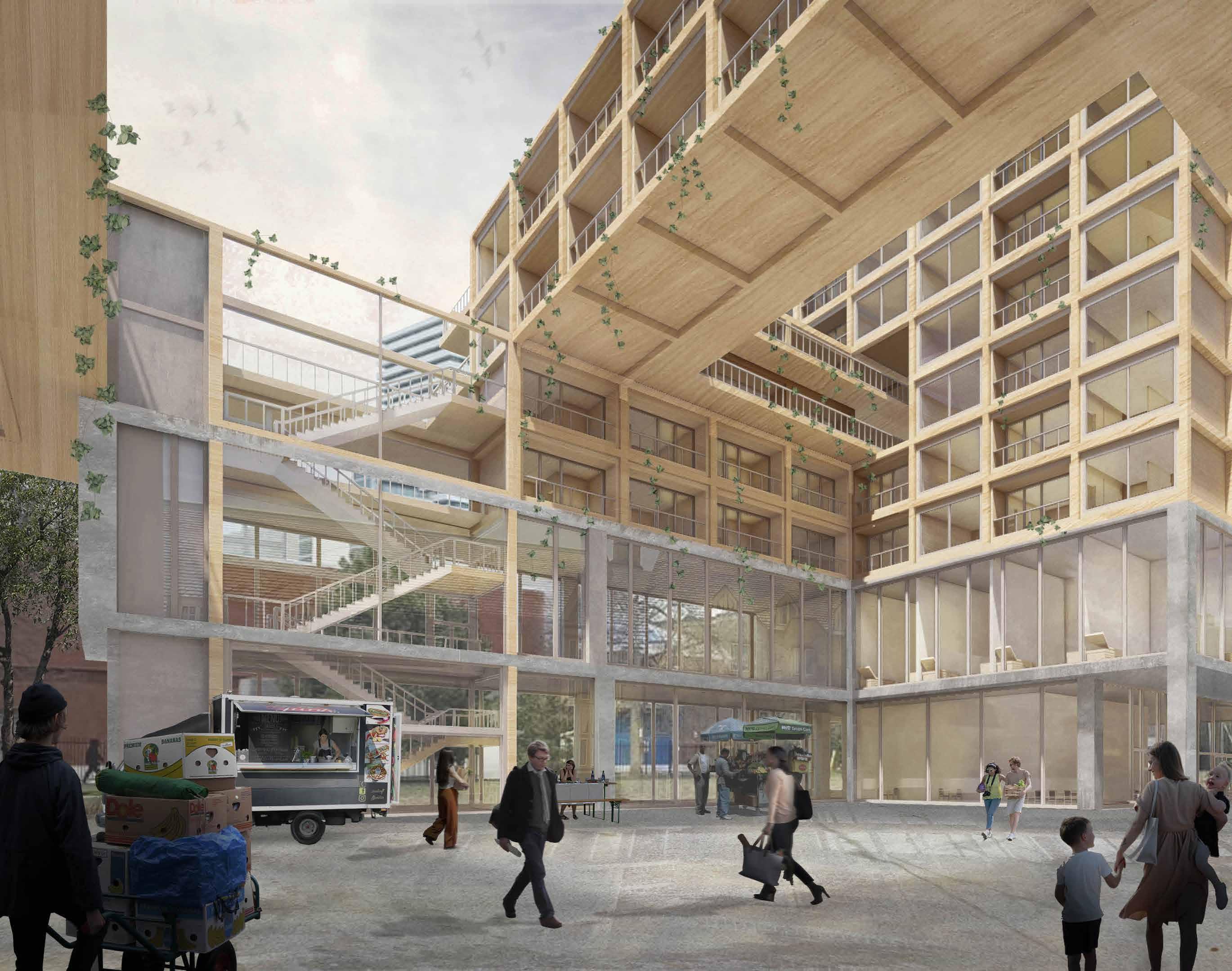 As a mass timber project, the buildiWng is made from cross-laminated timber making it sturdy, environmentally friendly, and flexible. With much open space, the building becomes a multi-cultural space where people can gather and enjoy special events.