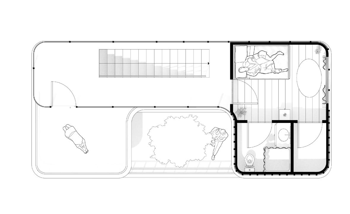 Utilising the Siheyuan, otherwise known as the traditional Chinese courtyard house, the house emphasizes an importance on quality family time. In Chinese culture, parents have difficulty vocally expressing their love but often express it through acts of service. In Asian culture, rather than saying ‘I love you,’ parents will often cut fruit for their children. By surrounding the courtyard with the kitchen, dining room and living room, the courtyard becomes a central space for families to bond and convey their affection towards their children.