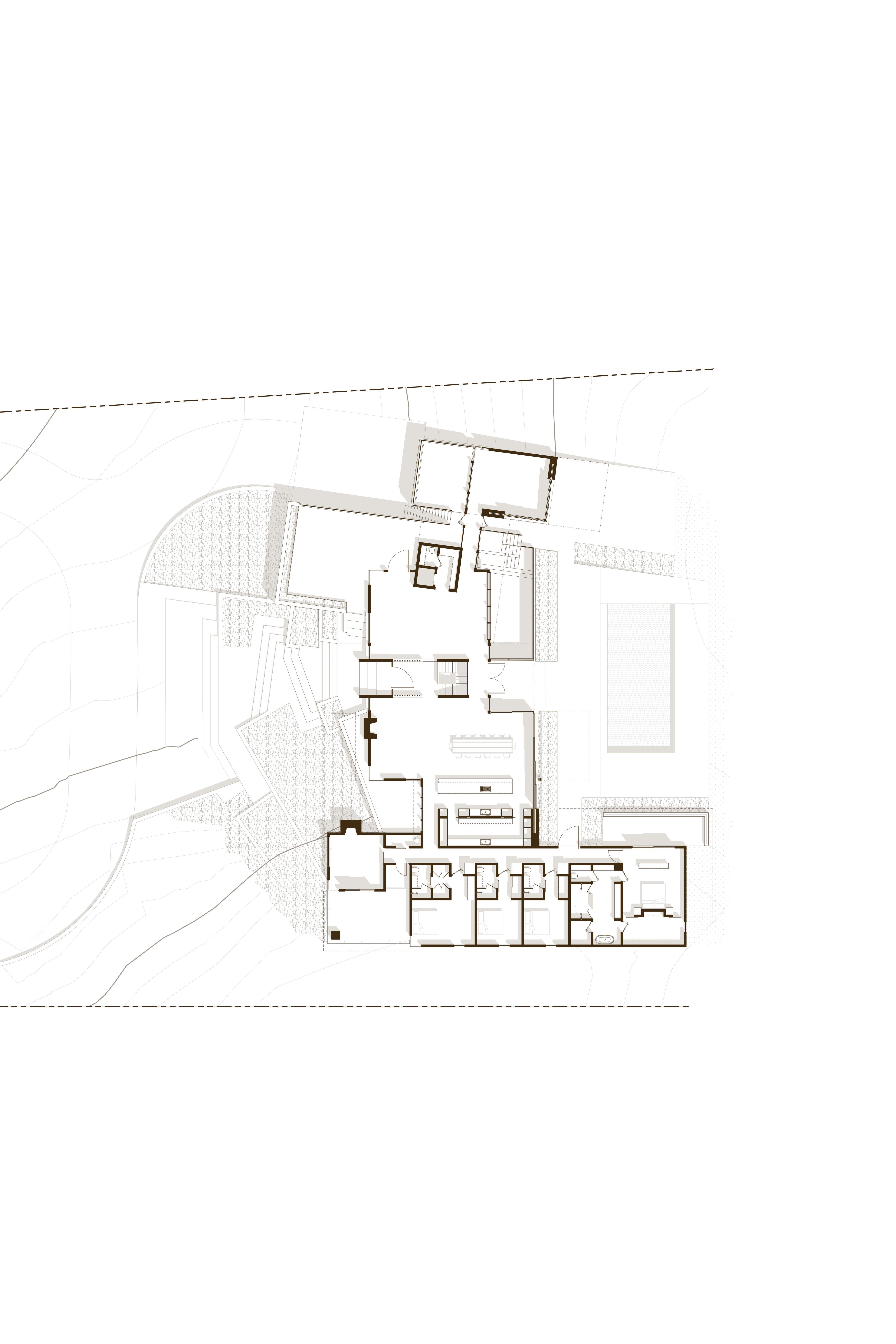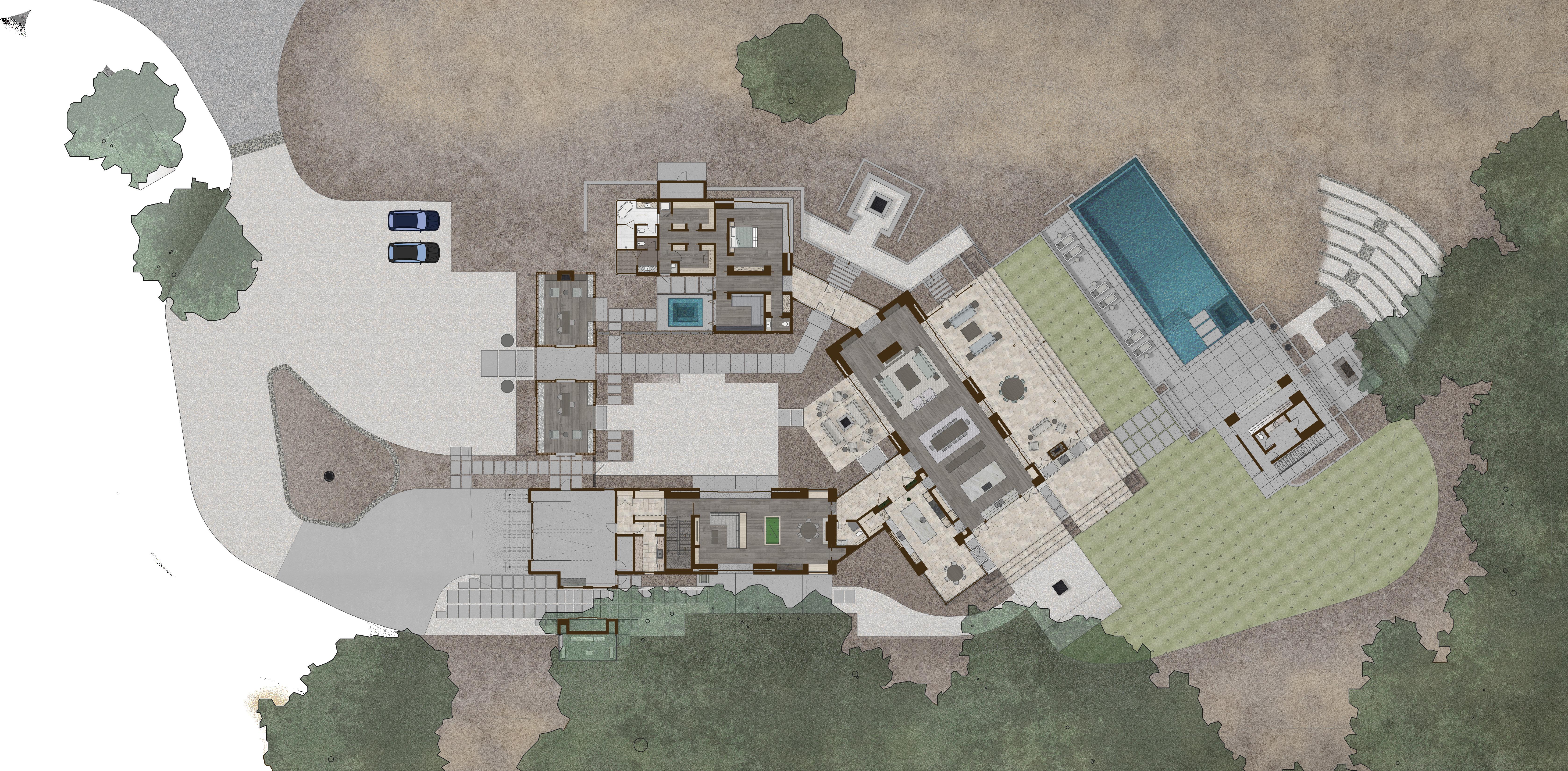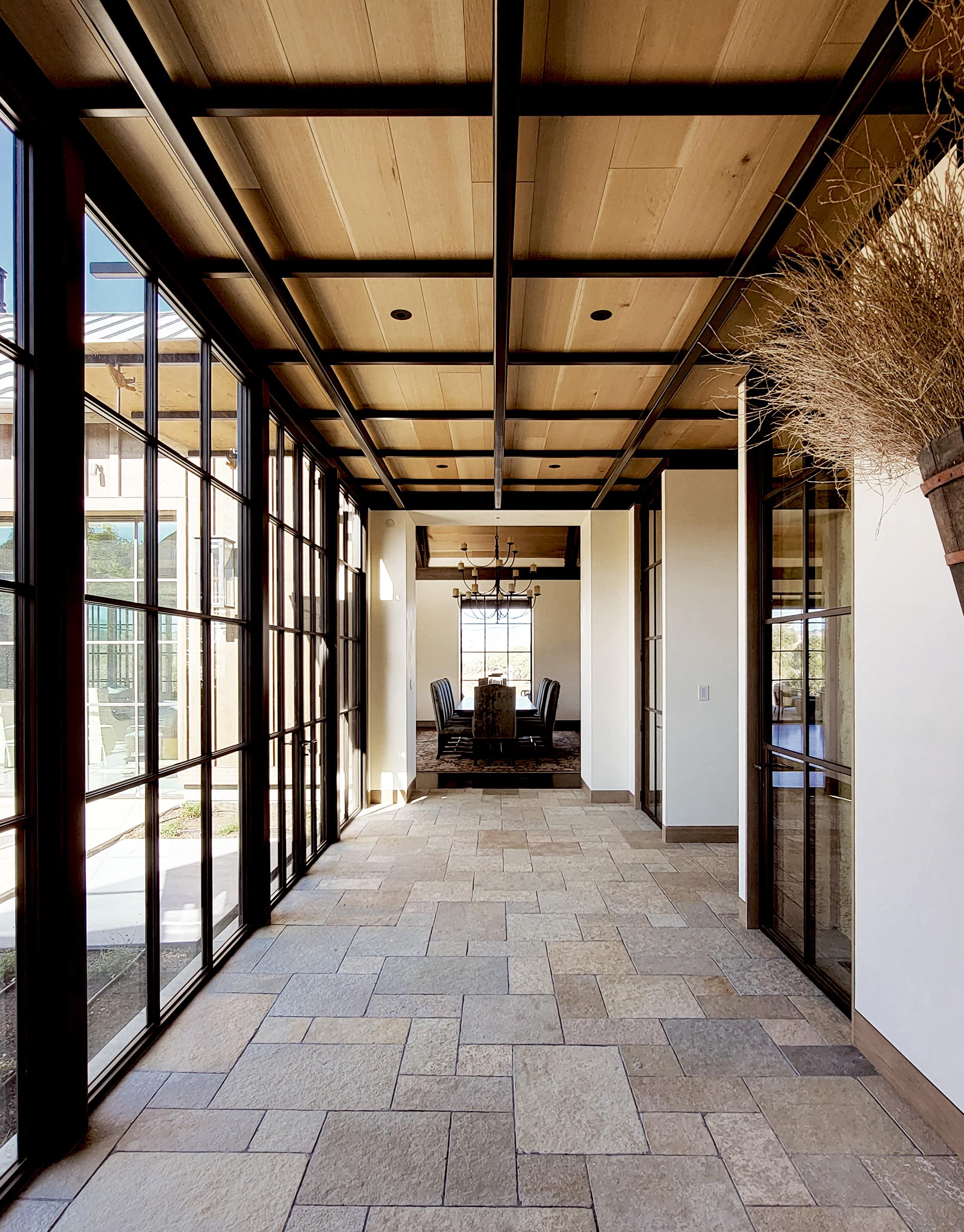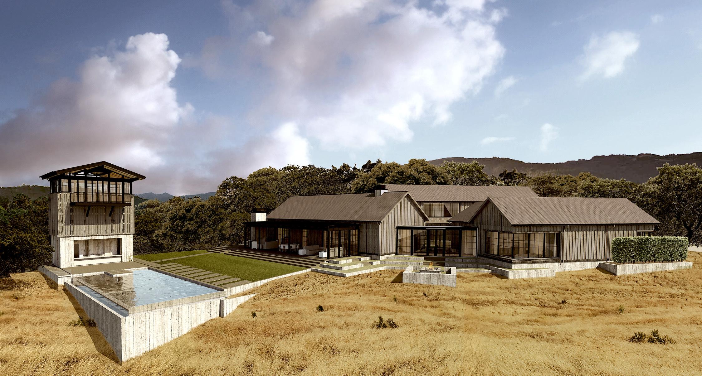 Built for a prominent Napa Valley wine maker & their family, the Napa Hill House tops the crest of the western hillside, looking north up valley & over the city of Napa. Designed to speak to the local architectural vernacular, the home is influenced by the agrarian roots that established the Napa Valley wine culture. Mimicking the layout often used on farms, the home is broken up into smaller, connected, programmatic elements that create a compound-like feel centered around a central courtyard. The central courtyard is protected from the elements, in particular high winds, that frequent the hilltop.