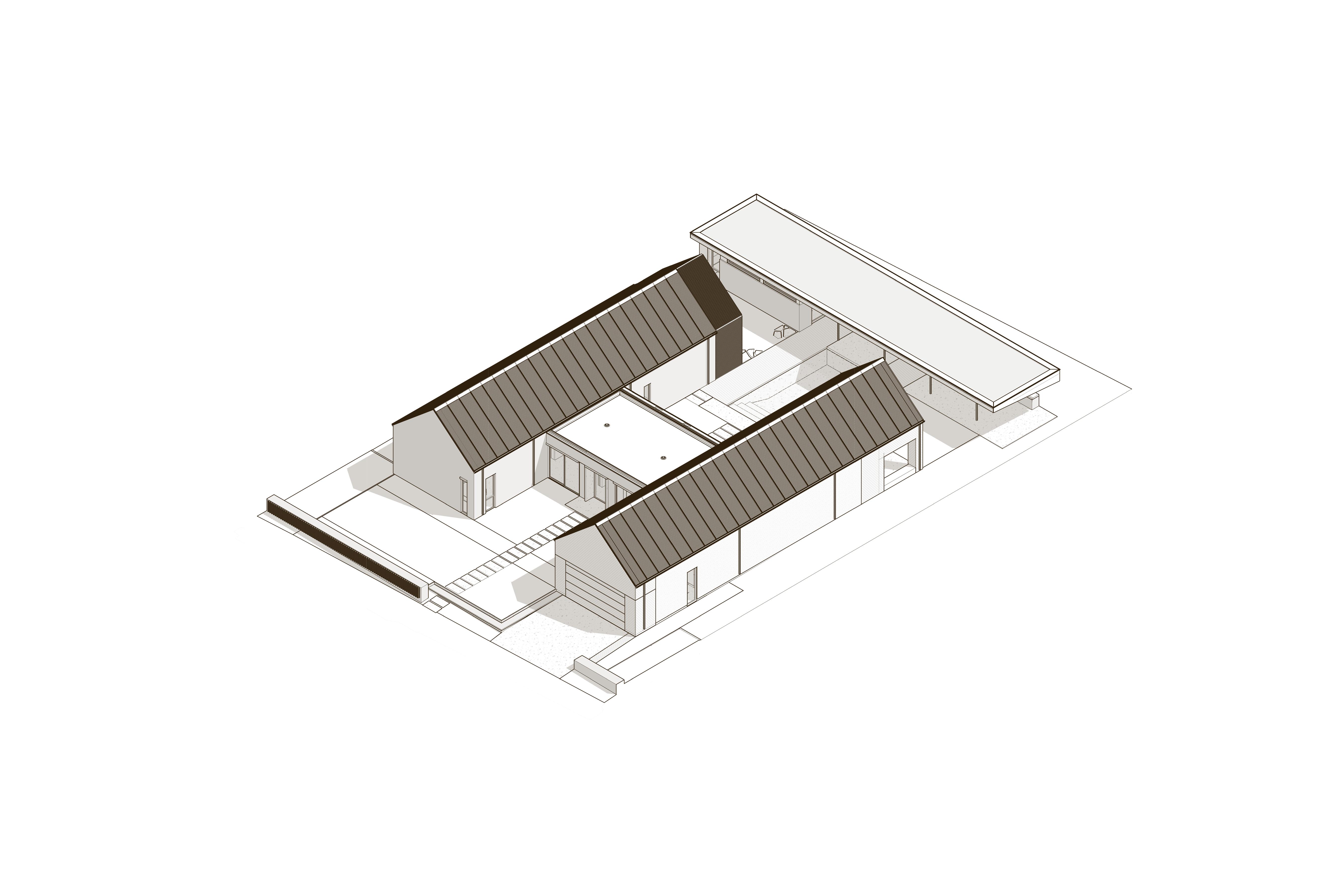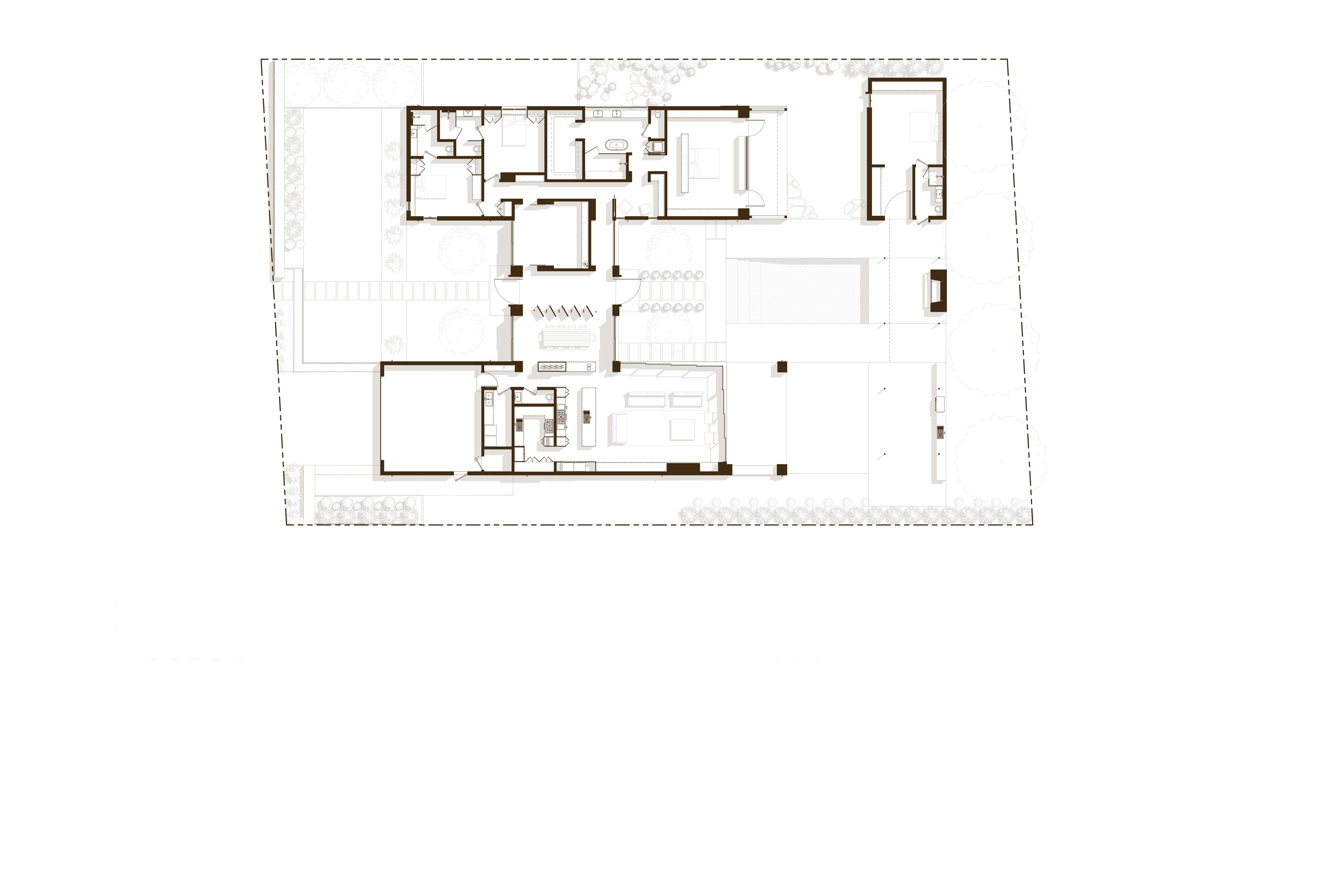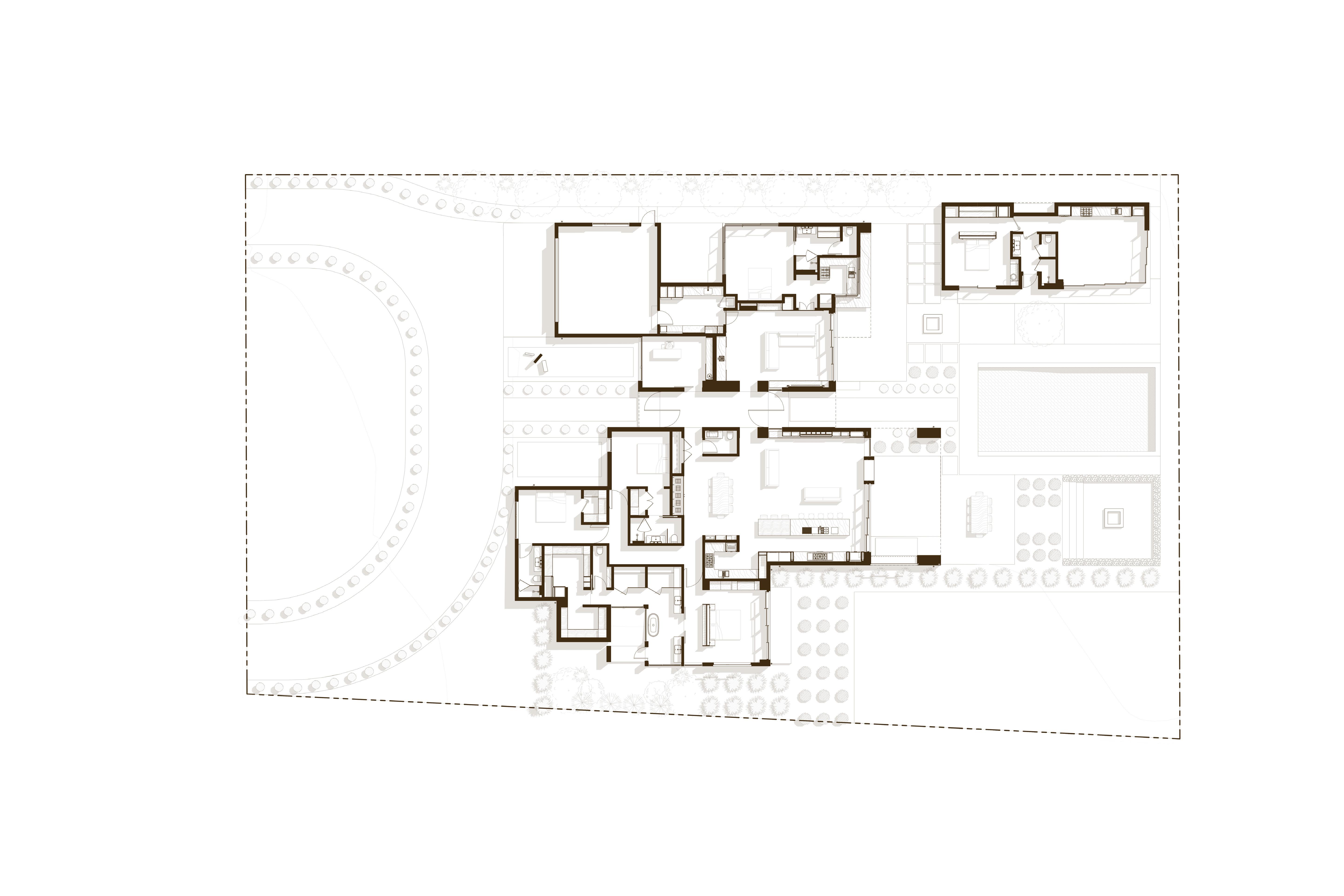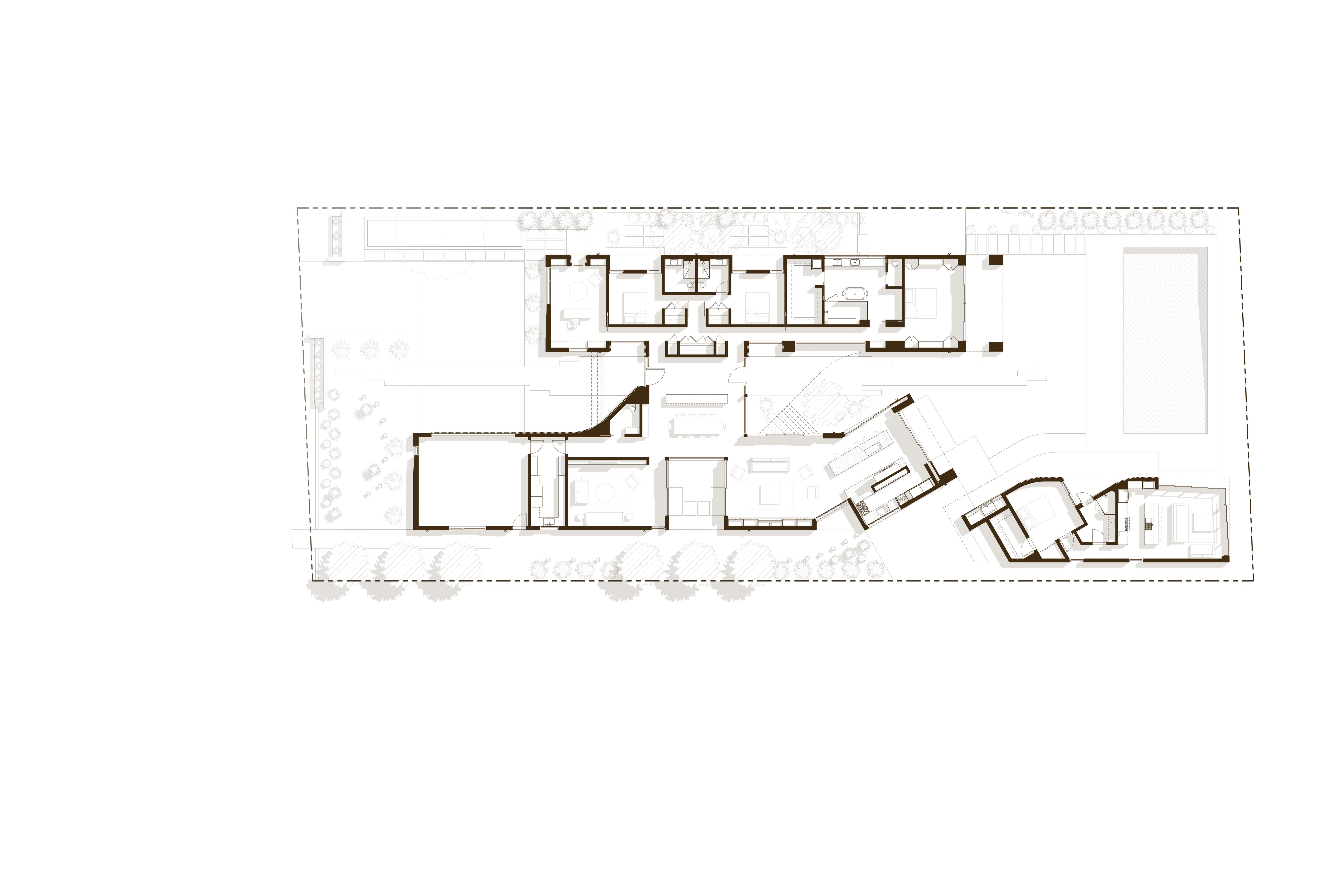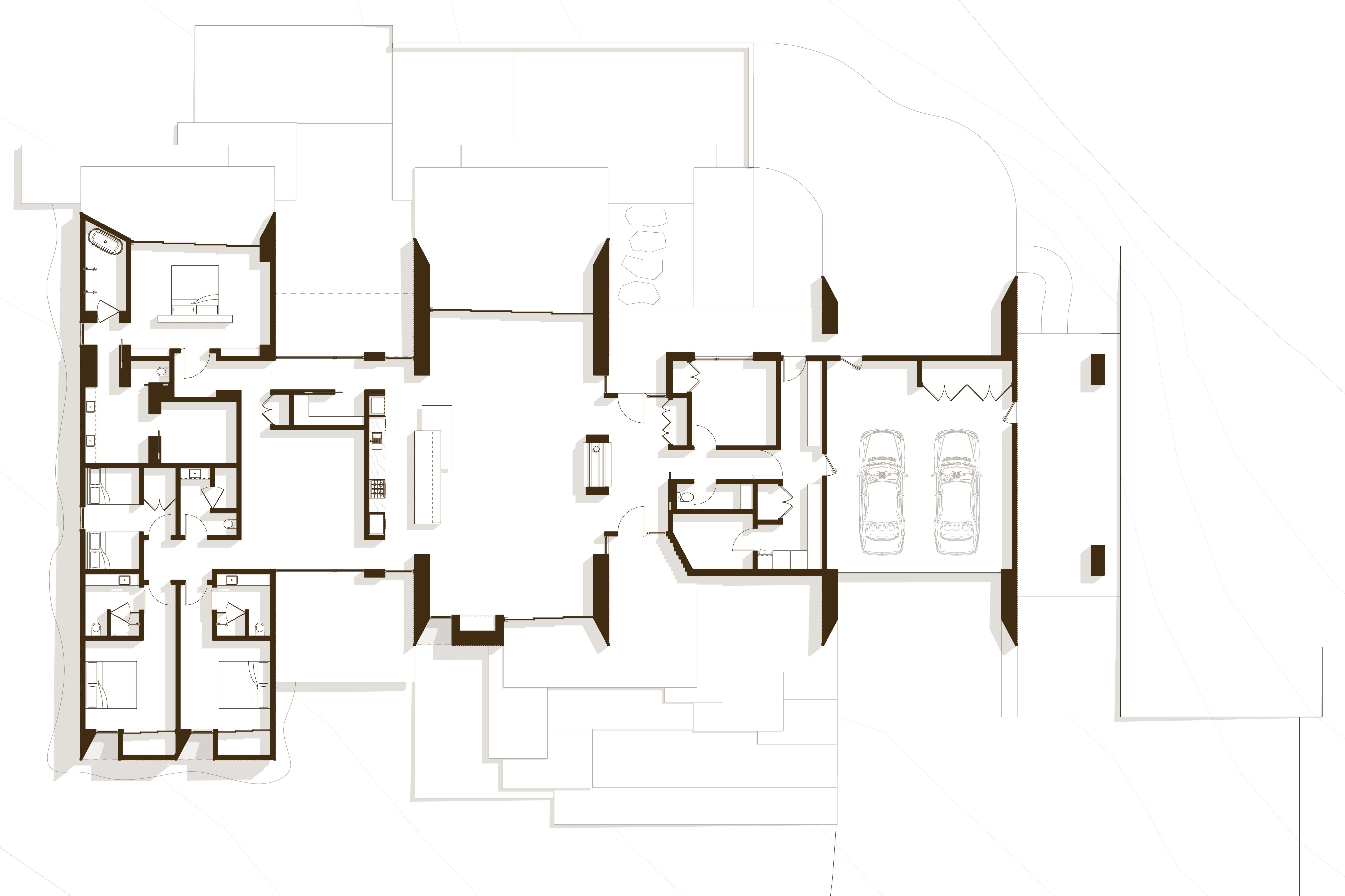 Built for a prominent Napa Valley wine maker & their family, the Napa Hill House tops the crest of the western hillside, looking north up valley & over the city of Napa. Designed to speak to the local architectural vernacular, the home is influenced by the agrarian roots that established the Napa Valley wine culture. Mimicking the layout often used on farms, the home is broken up into smaller, connected, programmatic elements that create a compound-like feel centered around a central courtyard. The central courtyard is protected from the elements, in particular high winds, that frequent the hilltop.