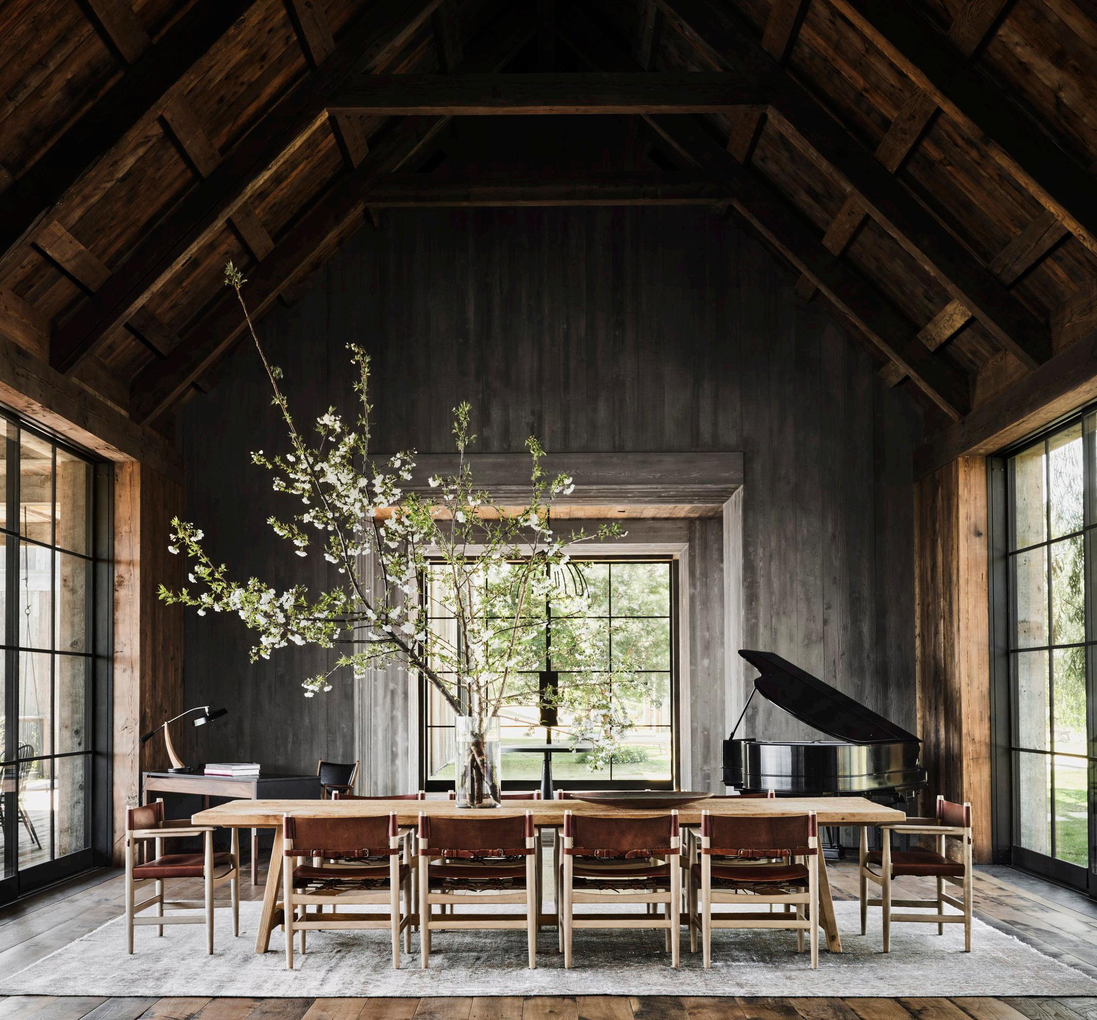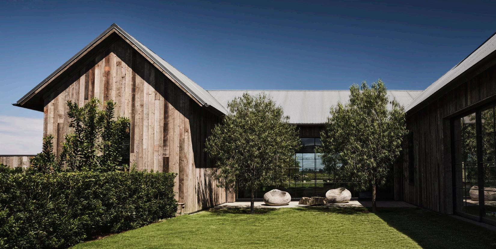 High in the hills, overlooking the glitz & glam of Hollywood & the surrounding Los Angeles basin, actors Ashton Kutcher & Mila Kunis built this stunning ode to a farmhouse. Their Beverly Hills home brings an air of modernity to the rural architectural stylings of the barn from a bygone era. Material selection emphasizes the rustic nature associated with farm style living, while modern touches, such as board formed concrete & enormous steel windows, bring the home into the now. With a focus on sustainable living, the main residence, guest house, & entertainment barn are powered completely by a rooftop solar voltaic array.