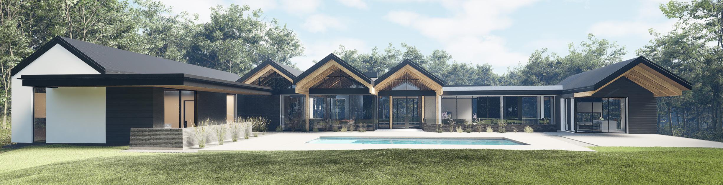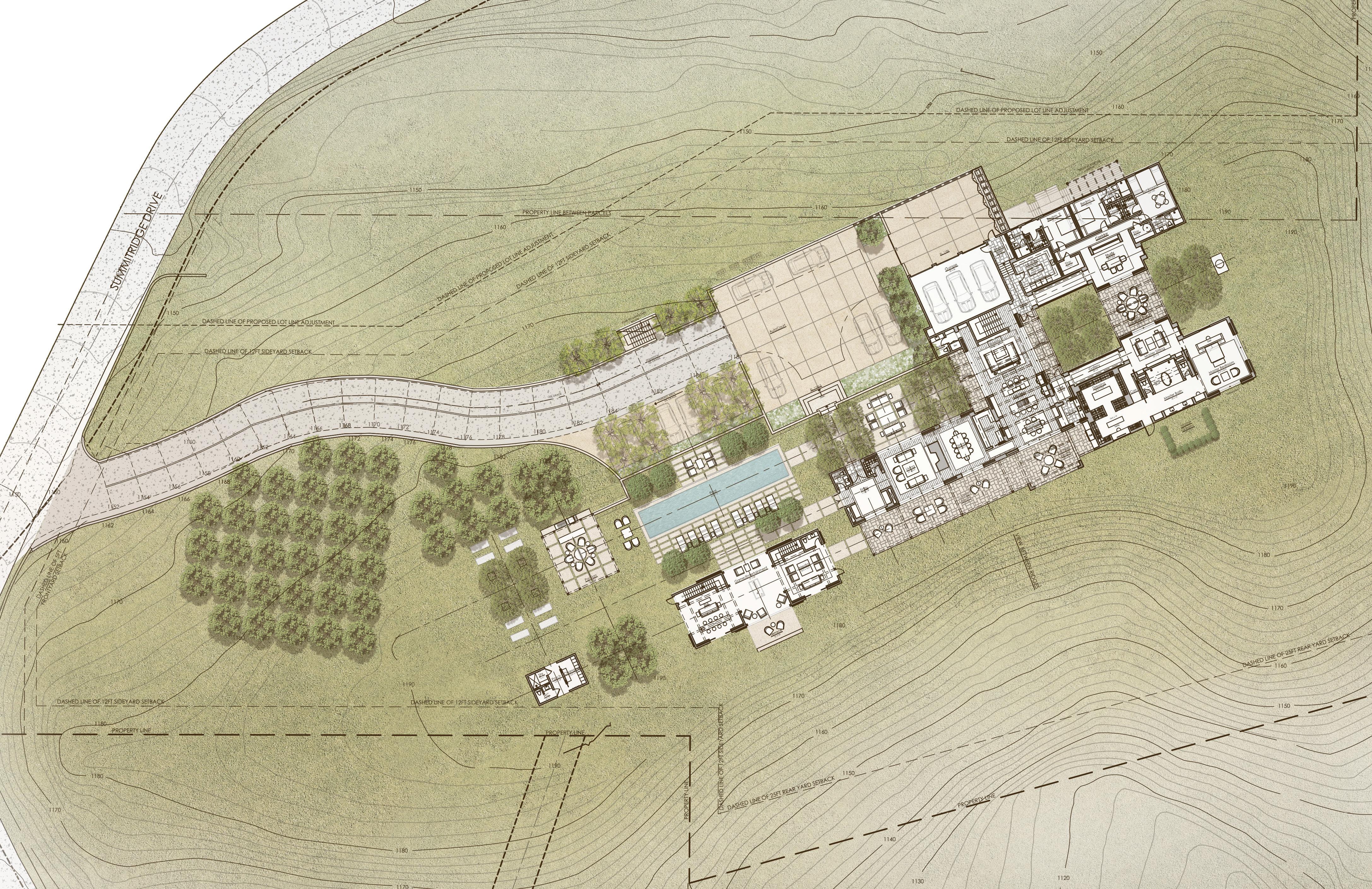 by the city of St. Helena, three units are required to be built on site. Home 003 consists of a 3,797 square foot main residence, 798 square foot pool house, & a 477 square foot in-law unit. Dramatic views north to the Mayacamas Mountains are accentuated by large openings positioned to capitalize on the natural beauty of the surrounding valley.