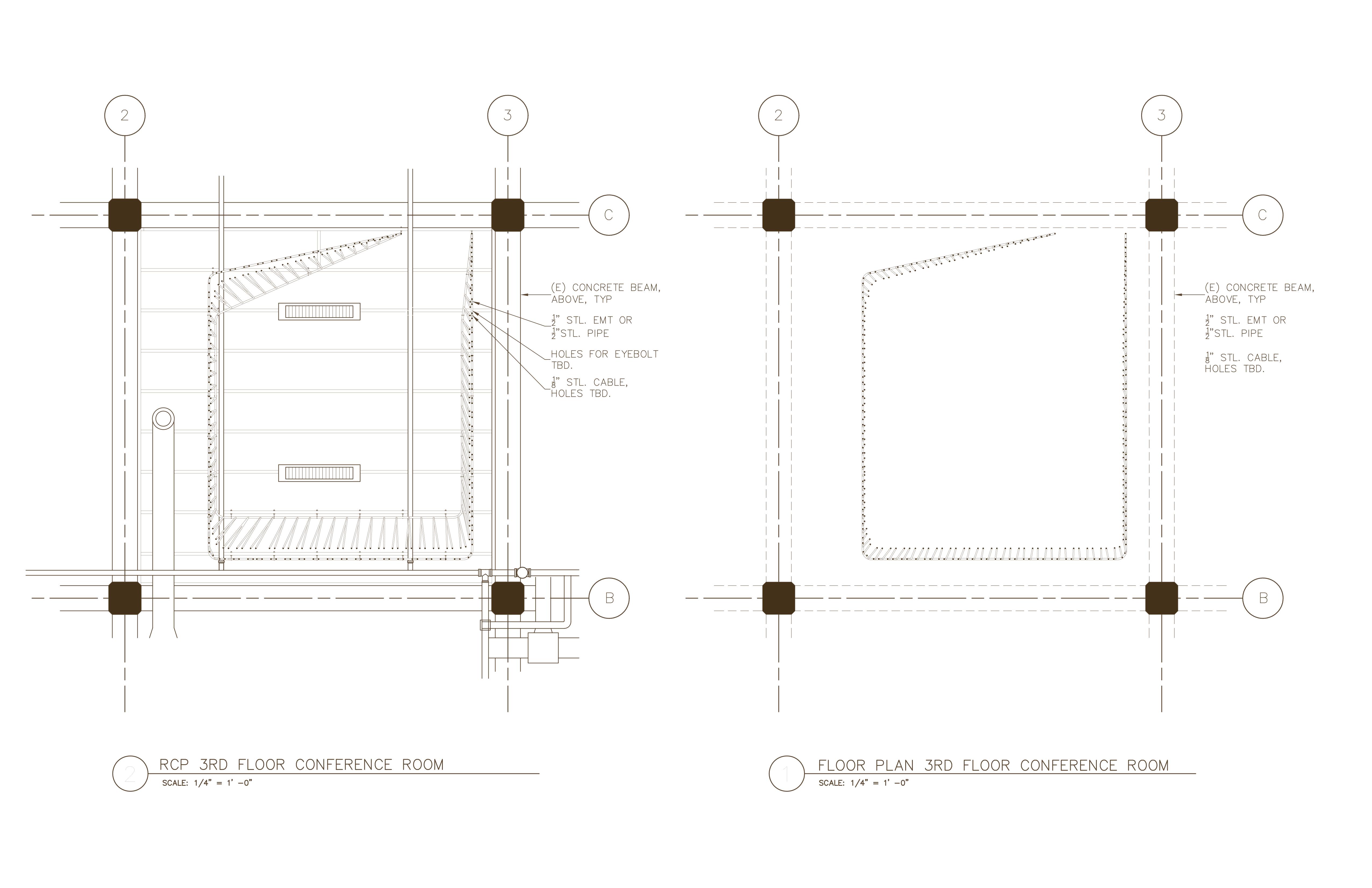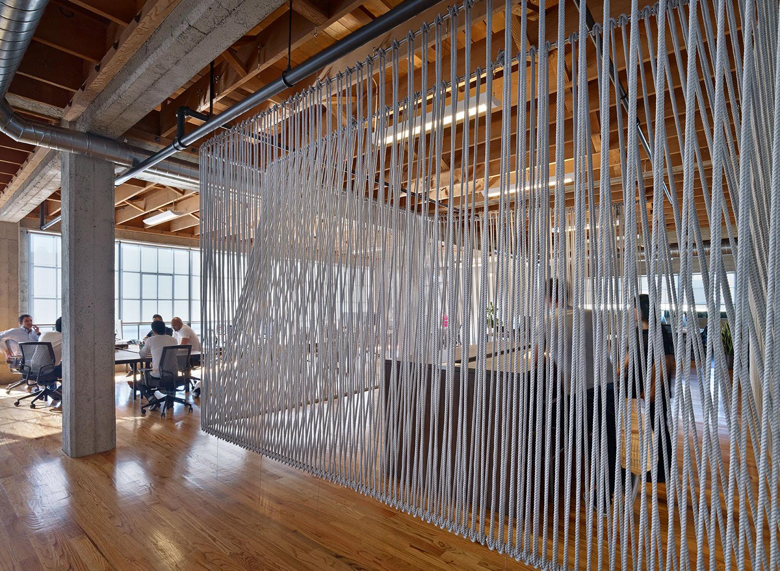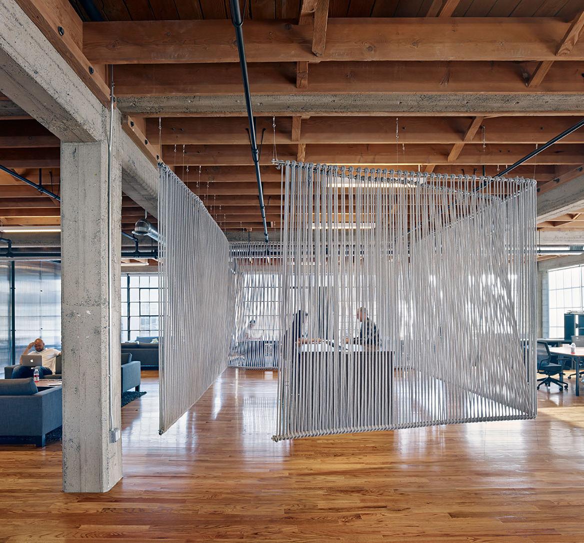 The Rope Room was a design/build project for the interior renovation of an existing warehouse space that is home to Heavybit Industries. The Rope Room demarcates a communal meeting space, doing so with the idea of the “wall” constructed from unconventional materials. Thick cotton rope, electrical conduit, cable & turnbuckles float in the center of the room creating a permeable membrane that defines space with an ethereal quality. The Rope Room has been featured in Arch Daily, Architectural Record & the project as a whole was a recipient of a AIA