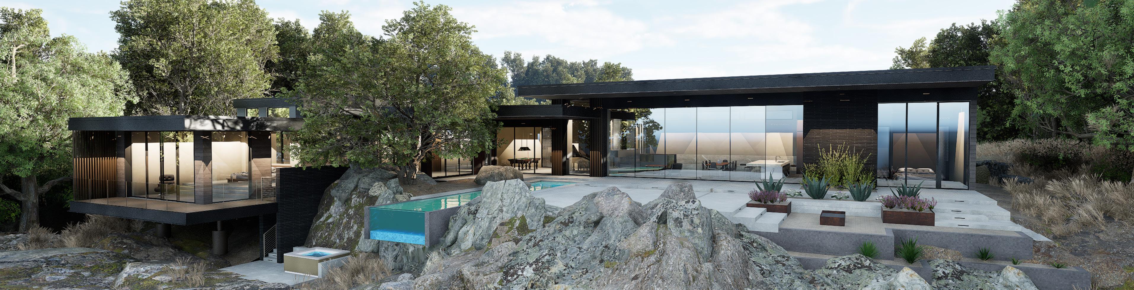 Perched high atop a dramatic rock outcropping along the eastern ridge line direct;y adjacent to downtown Napa, the Rock Ridge House takes full advantage of it’s unique site. From the street, the home is minimal & steadfast, cognitive of its natural surroundings. Care is taken to prolong the reveal. Once one has entered the home they are met by the sight of a reflecting pool, outstretched over a cliff, pointing towards expansive views of Napa all the way to the Golden Gate Bridge & San Francisco skyline.