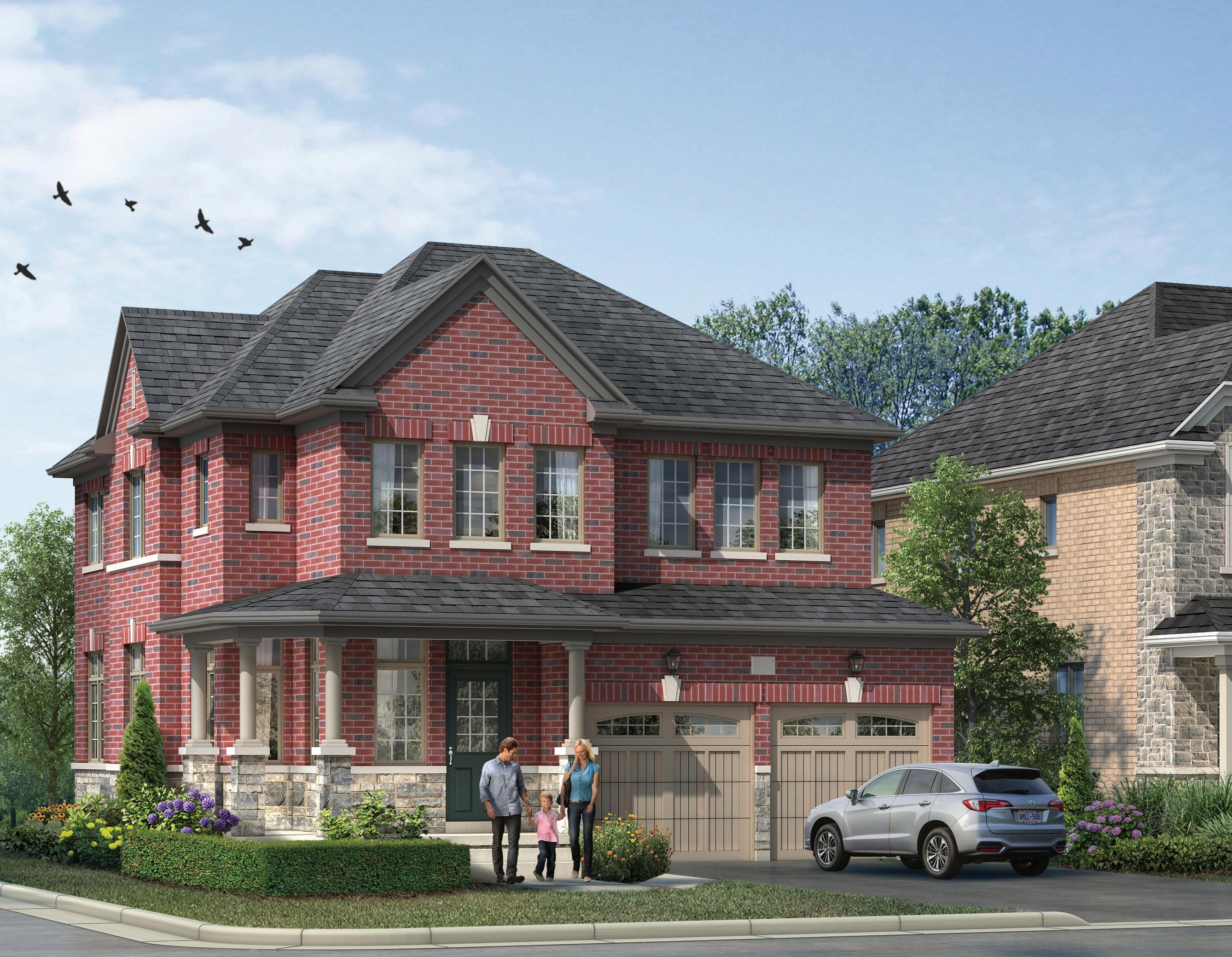 Classical and modern architectural elements combine to provide the Detached Homes with an impressive and welcoming streetscape. Sculpted stone and brick details enhance the look further. Wide porches, inviting entranceways and large sidewalks create a friendly and warm ambience for the community.