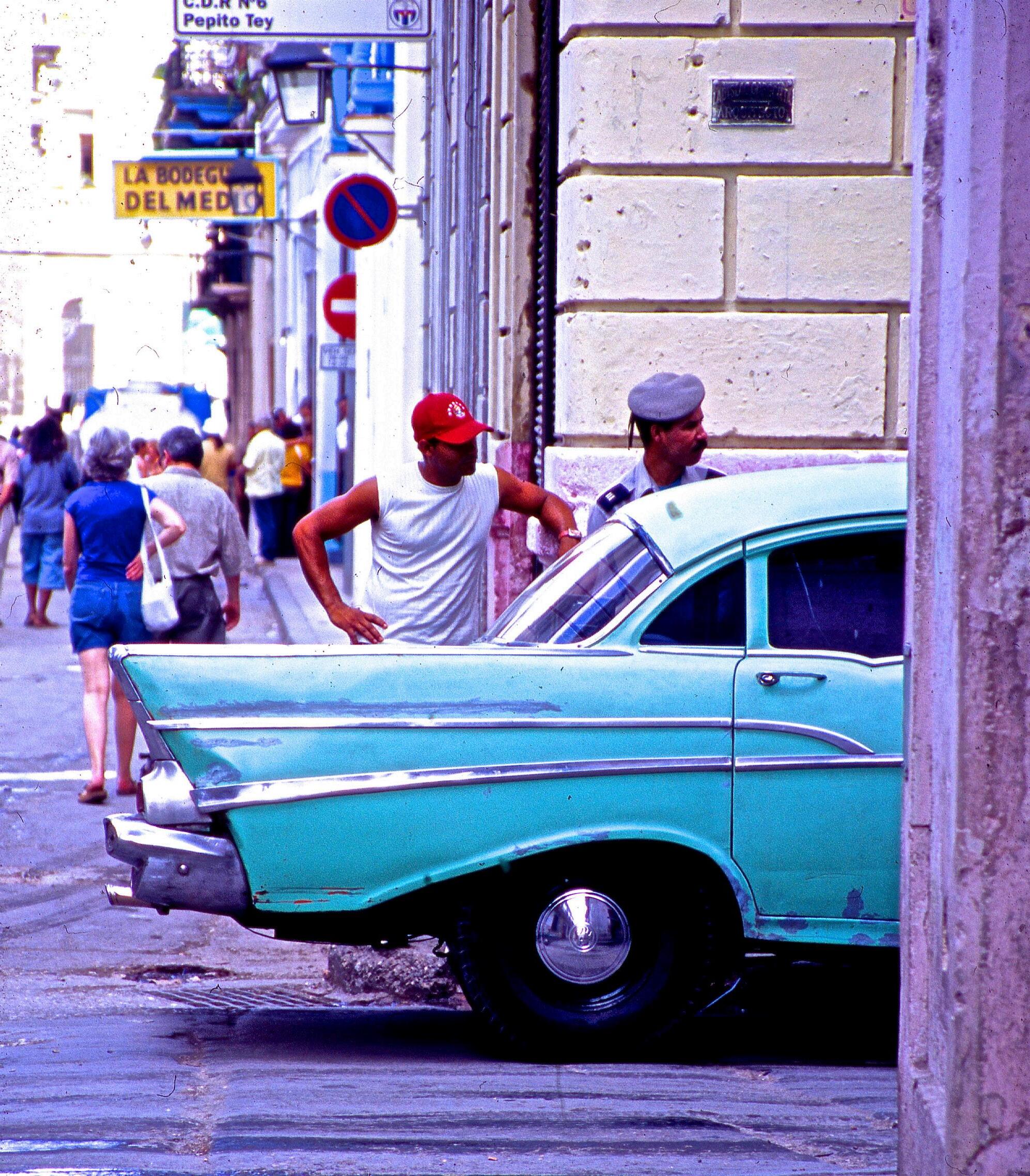 Owners of those old cars kept them running by whatever means they could. Everywhere you go, you’ll see the locals fixing their cars at the curbside or in garages, using whatever tools and parts are available.