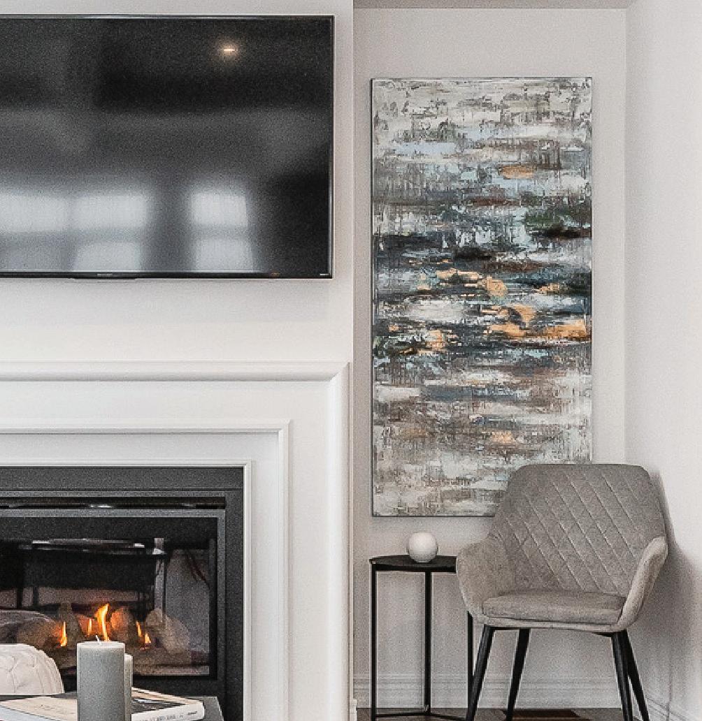 43. Beautiful electric fireplace with painted wood mantle in Rec Room*