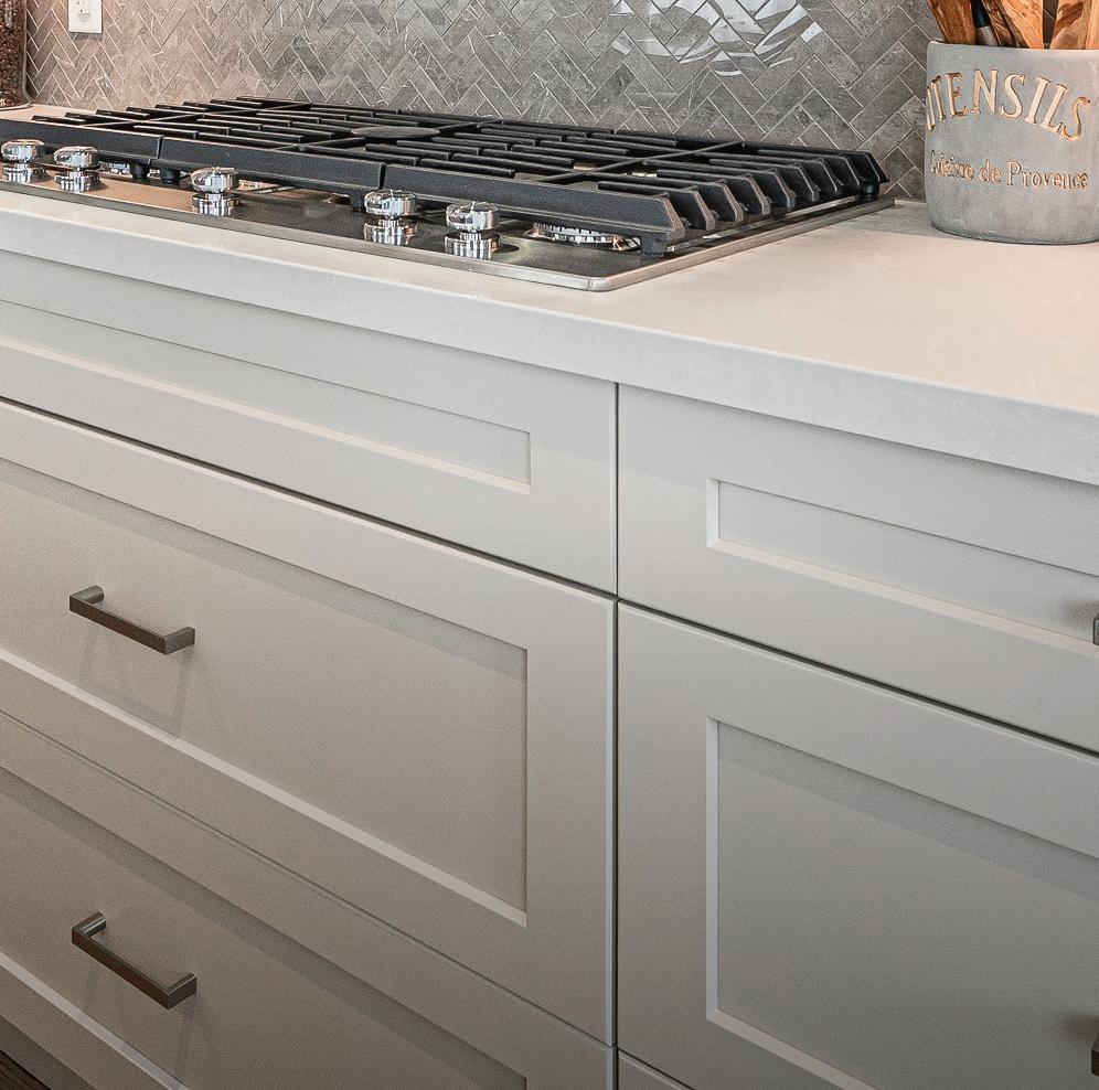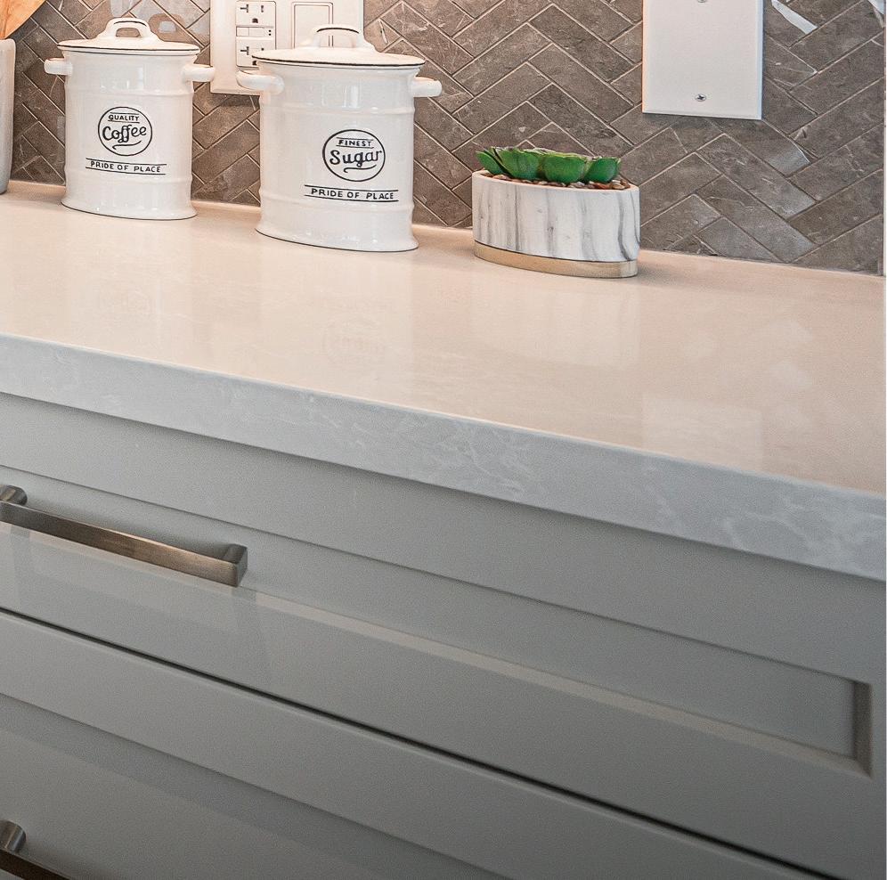 6. Luxury quartz or granite counters with built up square edge, double undermount stainless steel sink and upgraded faucet