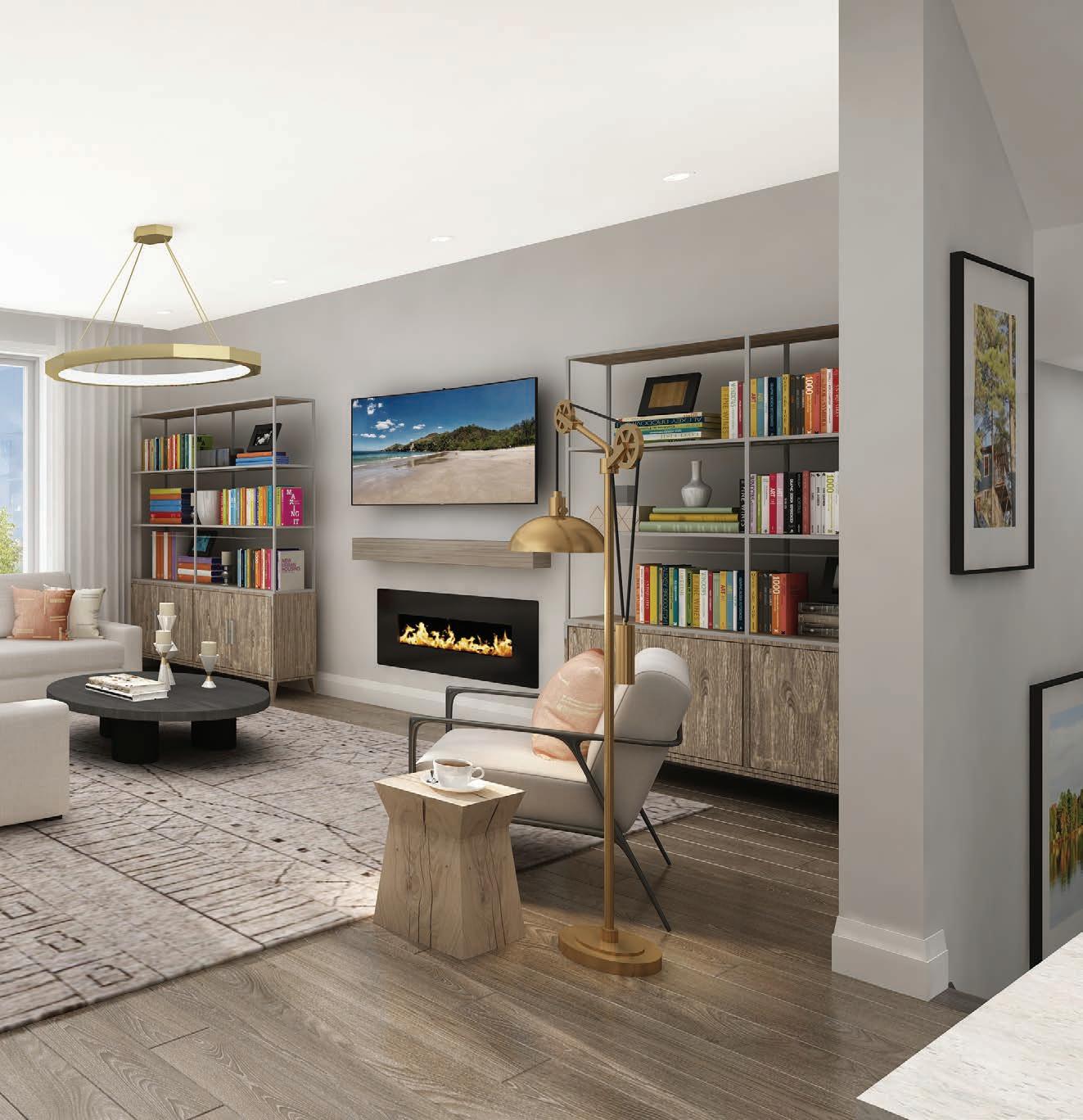 Soaring 9’ ceilings and large picture windows make this space bright and airy. Connect in the mornings around the breakfast bar, invite friends over for dinner and cozy up in front of the fireplace in the evening. From quality flooring to high ceilings, this open, connective space is the heart of the home.