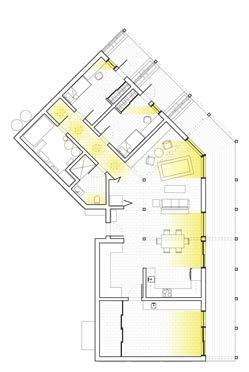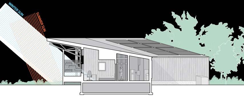 • The large roof footprint maximizes the collection of rainwater and surface area of solar water heaters providing the house with a consistent supply of thermal energy and hot water.