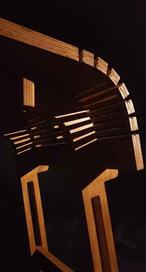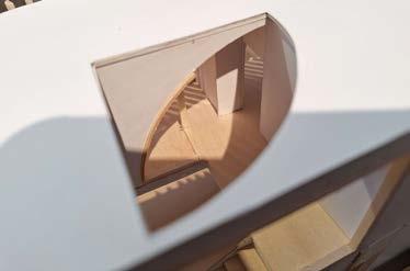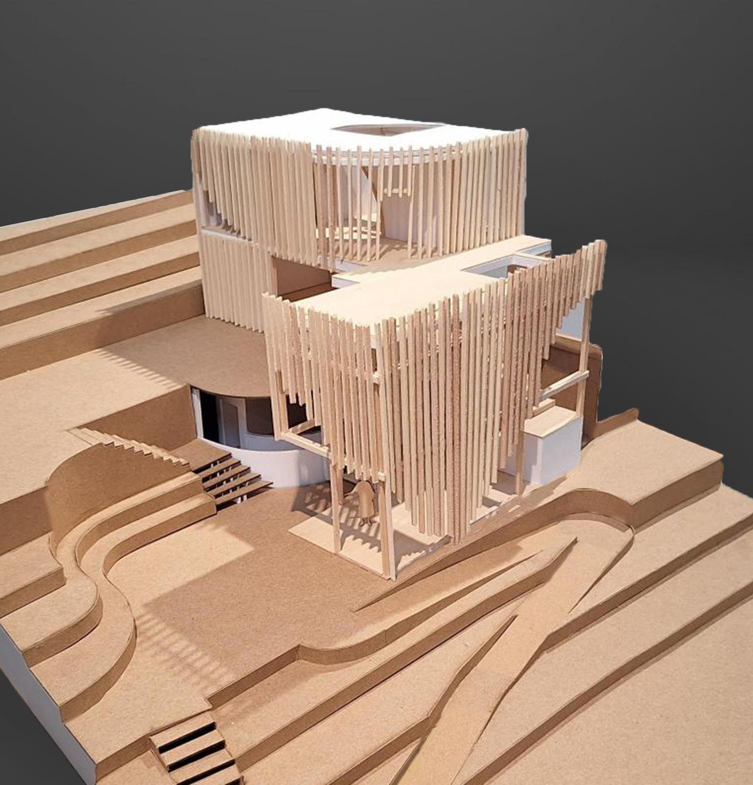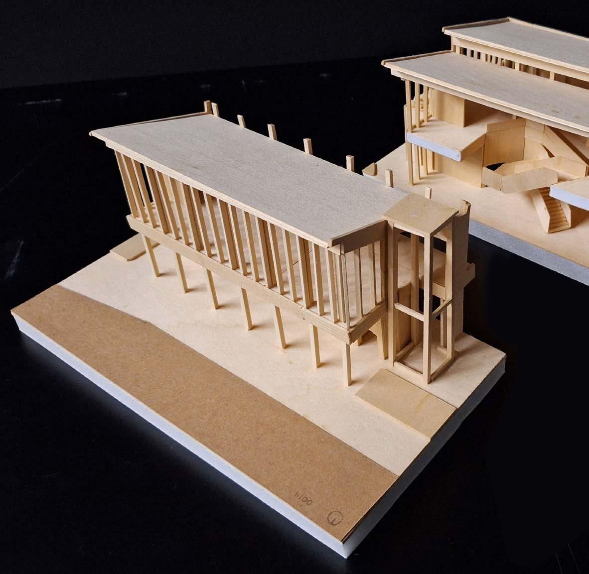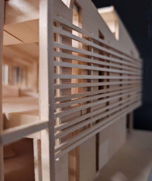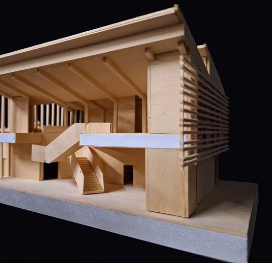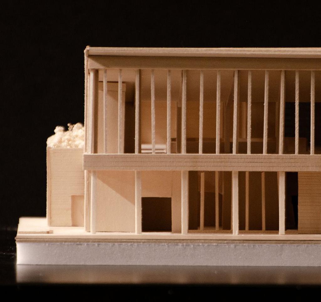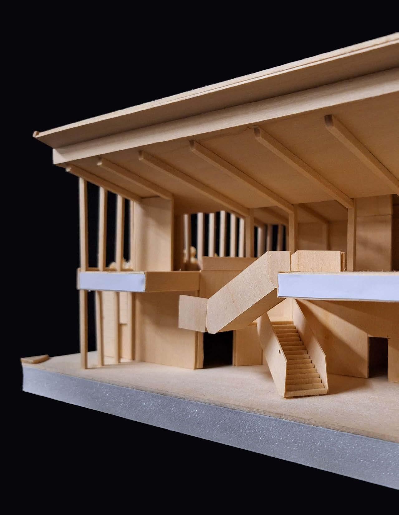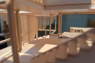 It should be noted that the final presentation model bears some interesting elements, such as a uniform wood profile, textured exterior, and the fact that it’s a sectional model, which can be cleanly opened and put together with ease. Due to this addition feature, extra attention was taken to express the detail in the feature stair and maintain the alignment of each joist.