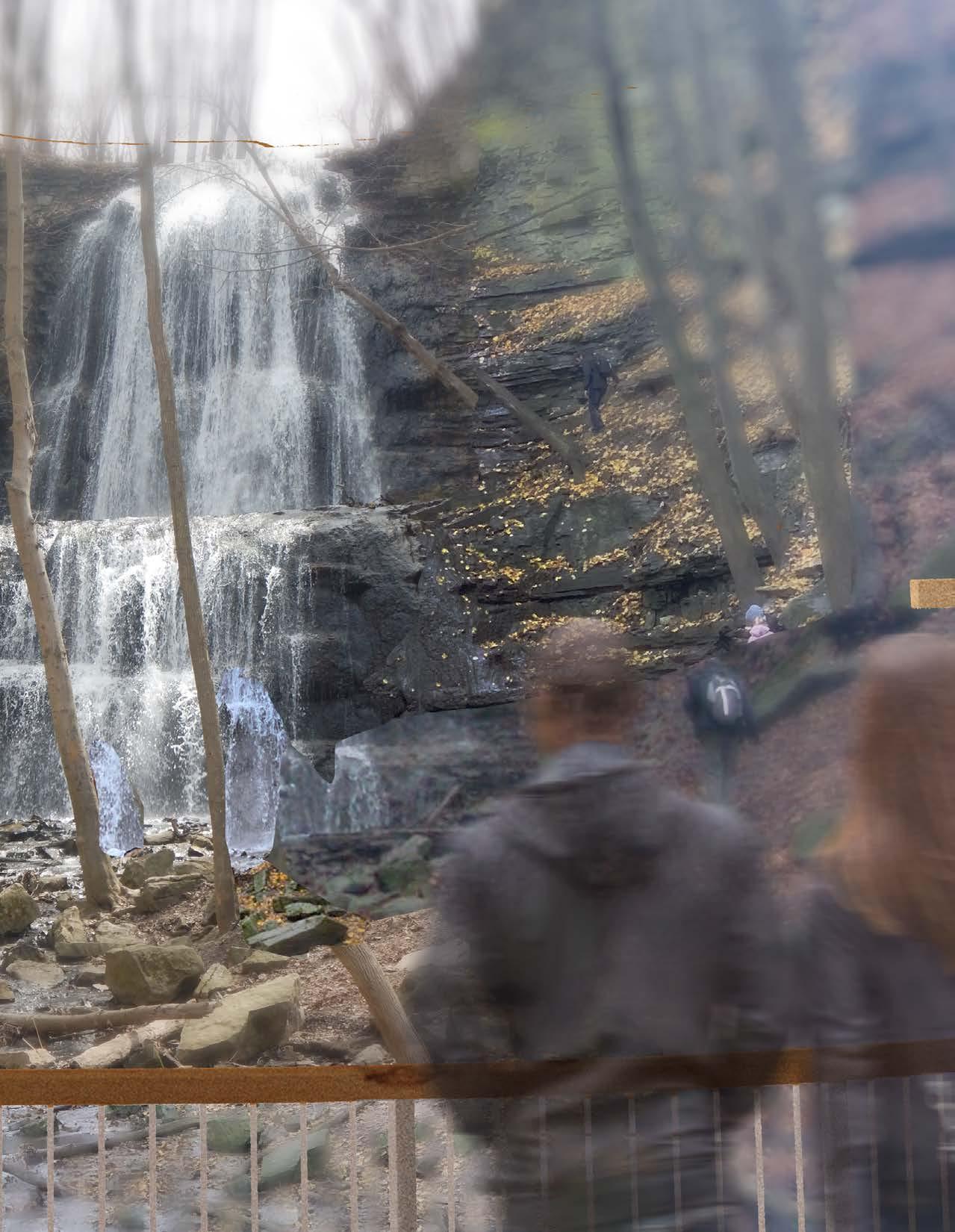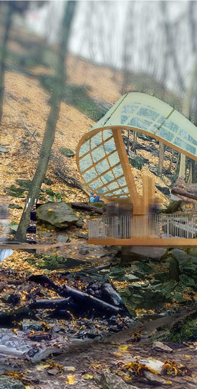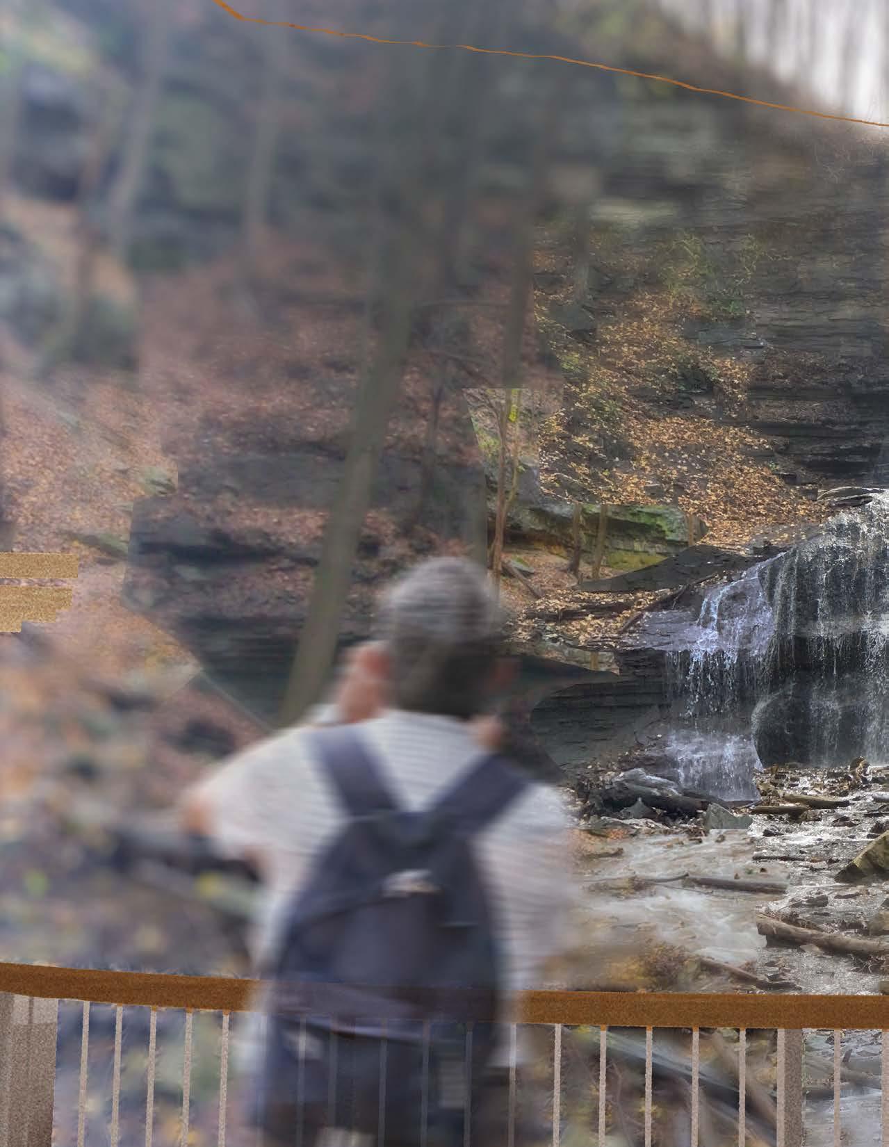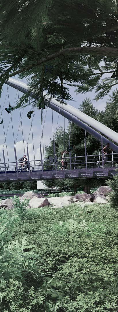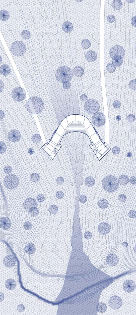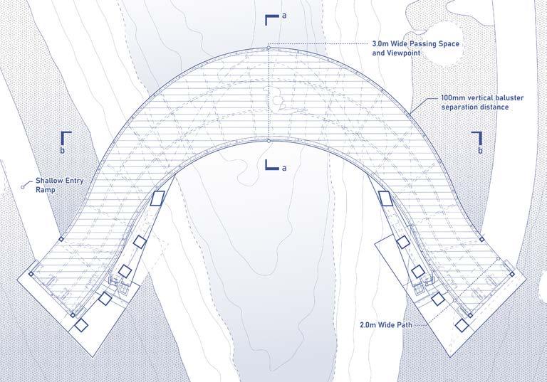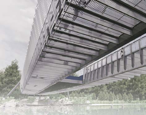 Despite the beauty of the lake and river, the current concrete bridge that exists for people was designed mainly for road traffic and lacks proper pedestrian infrastructure. Therefore, Cerulean Shores is designed to fulfill both needs, to improve pedestrian access between the adjacent hiking trails on opposite sides of the river while also providing a unique crossing experience for its users.