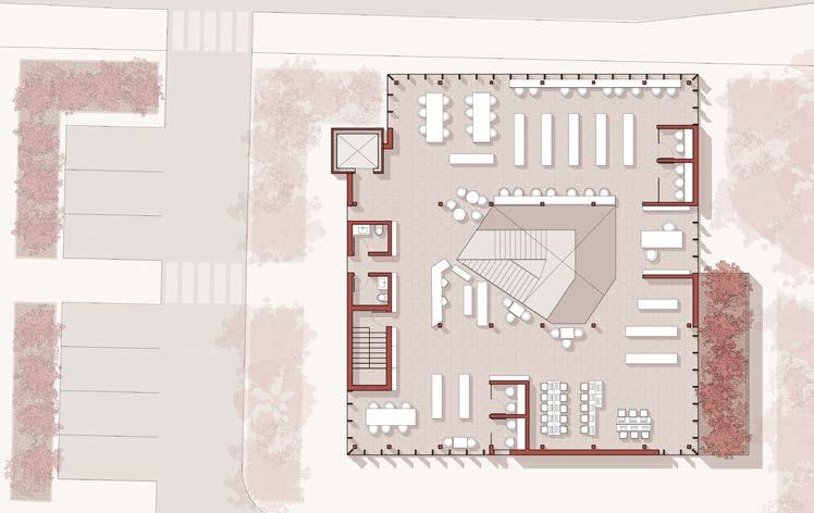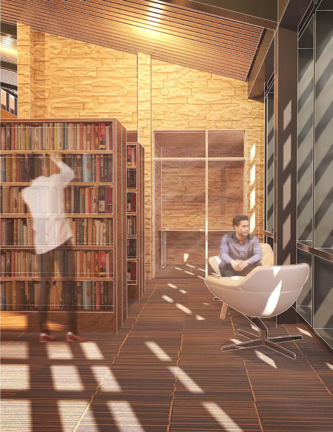 Furthermore, the café opens into the ground floor atrium space, acting as additional seating where users are encouraged to grab a light snack to go along with their reading, and vice versa, or simply to provide more seating during peak hours.