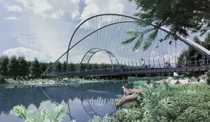To further enhance the experience of viewing the crystal-clear waters of the river, the center of the bridge features a clear opening where users can view directly down into the water below.