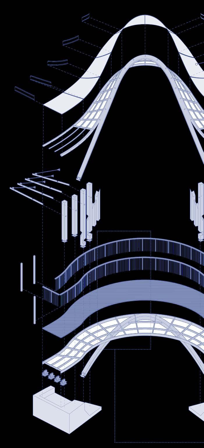 Interior steel arches and seating platform (HSS tubes, 300mm diameter) (HSS welded steel sheets)