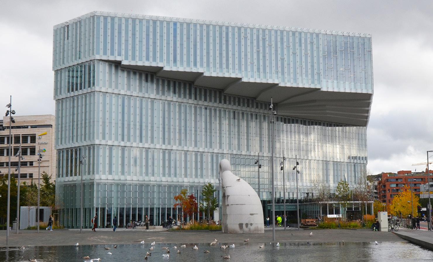 Norway’s library is located centrally in the Bjørvika district between Oslo’s main railway station and the opera. It was designed by the architecture firm Lund