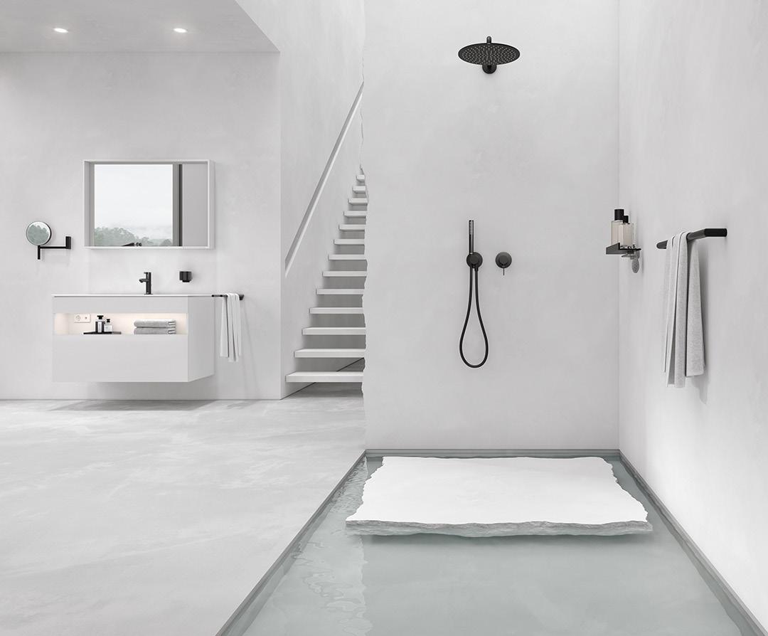 The IXMO range of fittings is also available in the matt black colour palette, this enables design variety and planning freedom, not only in the shower, but in other areas of the bathroom.