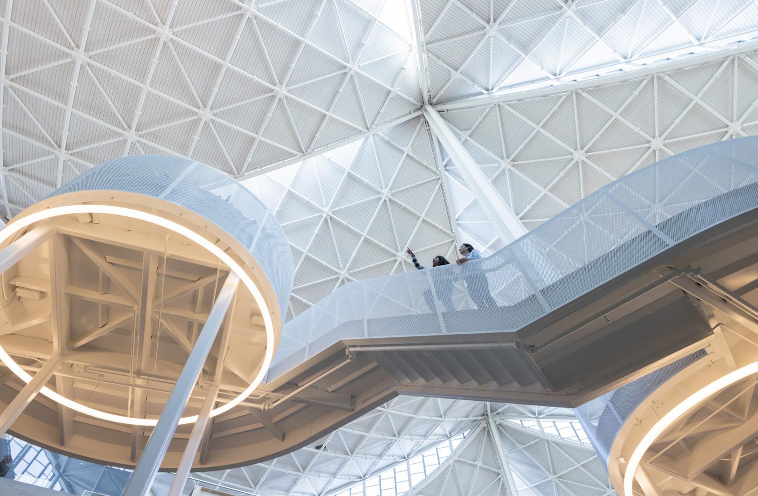 Hagem Architekter AS in collaboration with Atelier Oslo and attracts millions of visitors a year. The building has six floors that are held in place by three towers, creating an open space in the center of the building that forms an atrium.