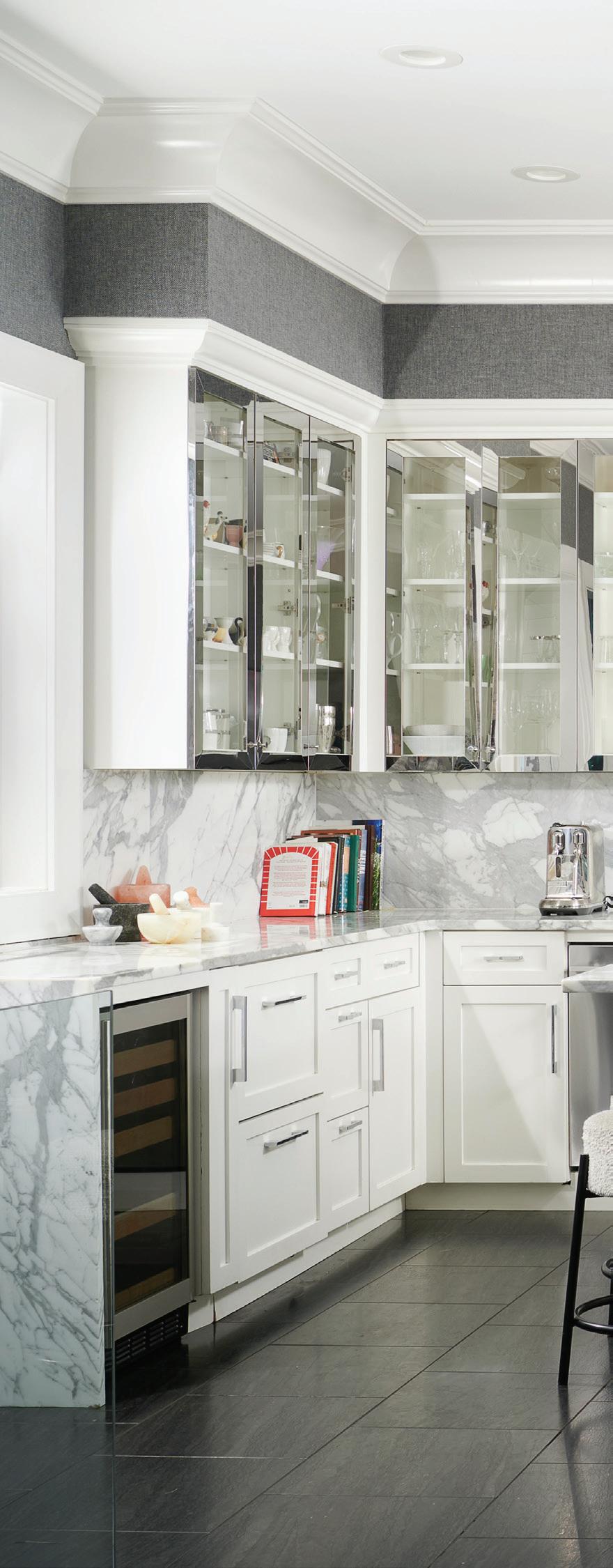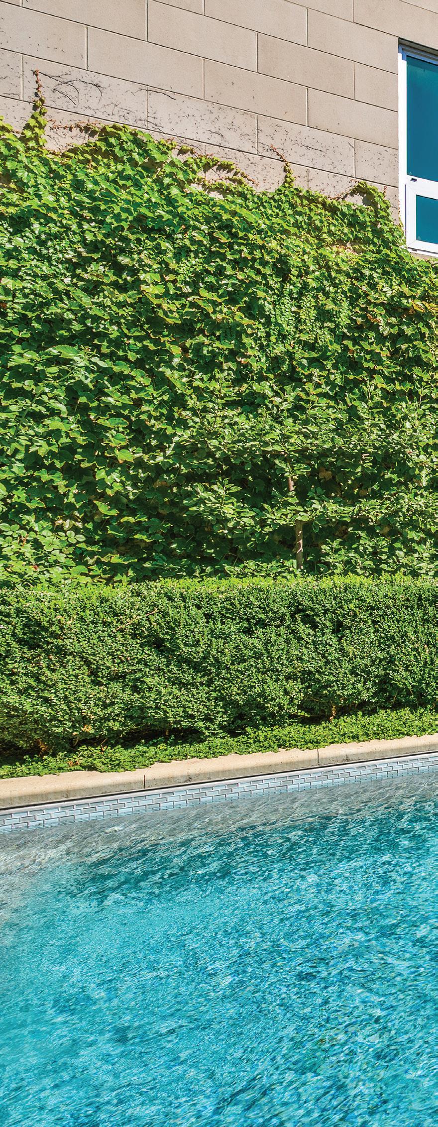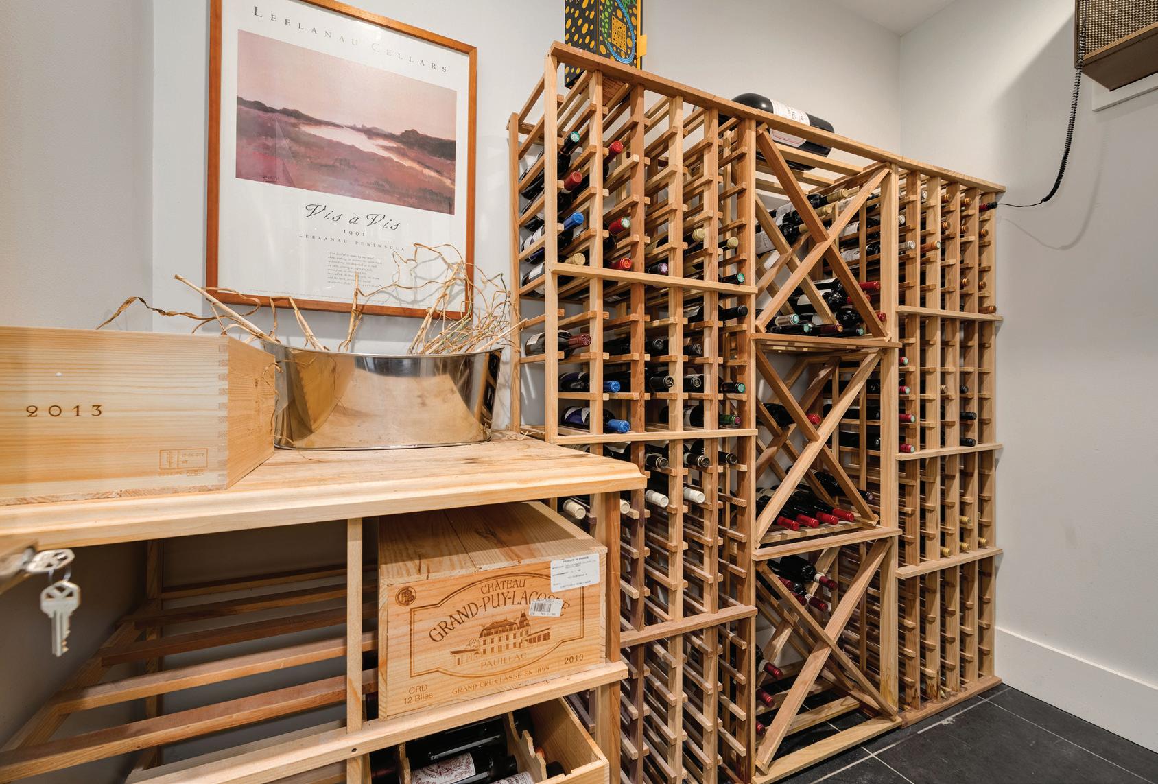 This custom 6-bedroom, 5.5-bathroom home has a chef’s dream kitchen, once featured in Wine Spectator, and is complete with a wood burning fireplace adjacent to the sunroom for casual dining when the formal dining room isn’t necessary. The second floor has the coveted 4 bedrooms while maintaining an impressive primary suite with a huge dressing room and a spa quality primary bath with dual vanities, Hermès wallcovering, heated marble floors, a freestanding tub, and steam shower. The lower level features an oversized great room with a media lounge, a wet bar with a Sub-Zero fridge and an ice maker, a gaming area, a spacious guest bedroom and full bath, a wellappointed home gym, storage closets with leather-wrapped doors, a wine cellar, a workshop, a mudroom and a full bath with a washer/ dryer for pool towels.