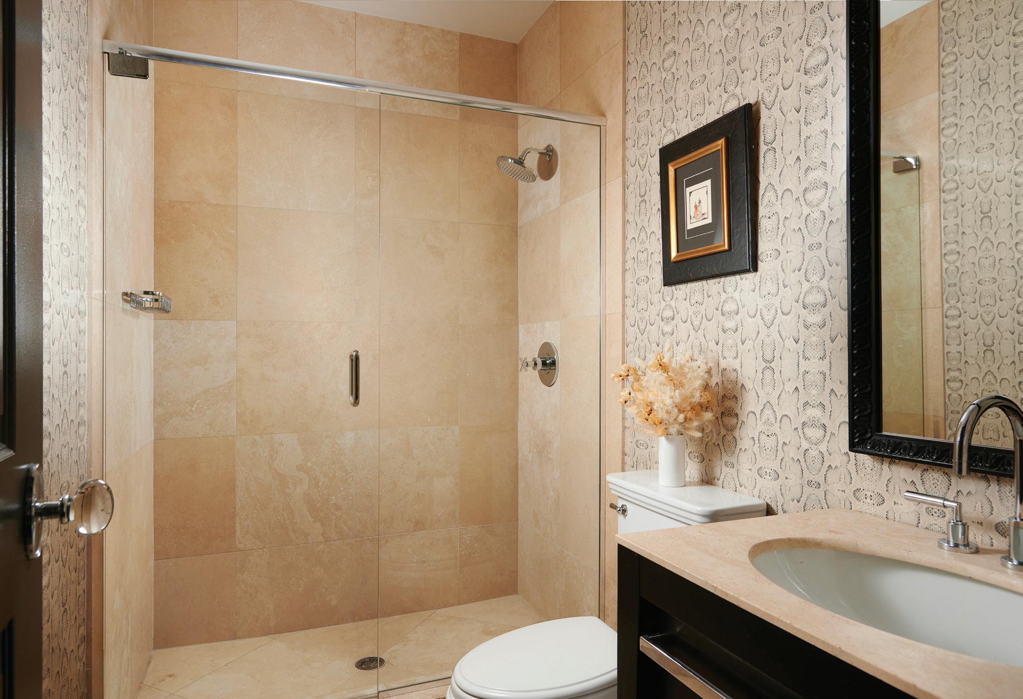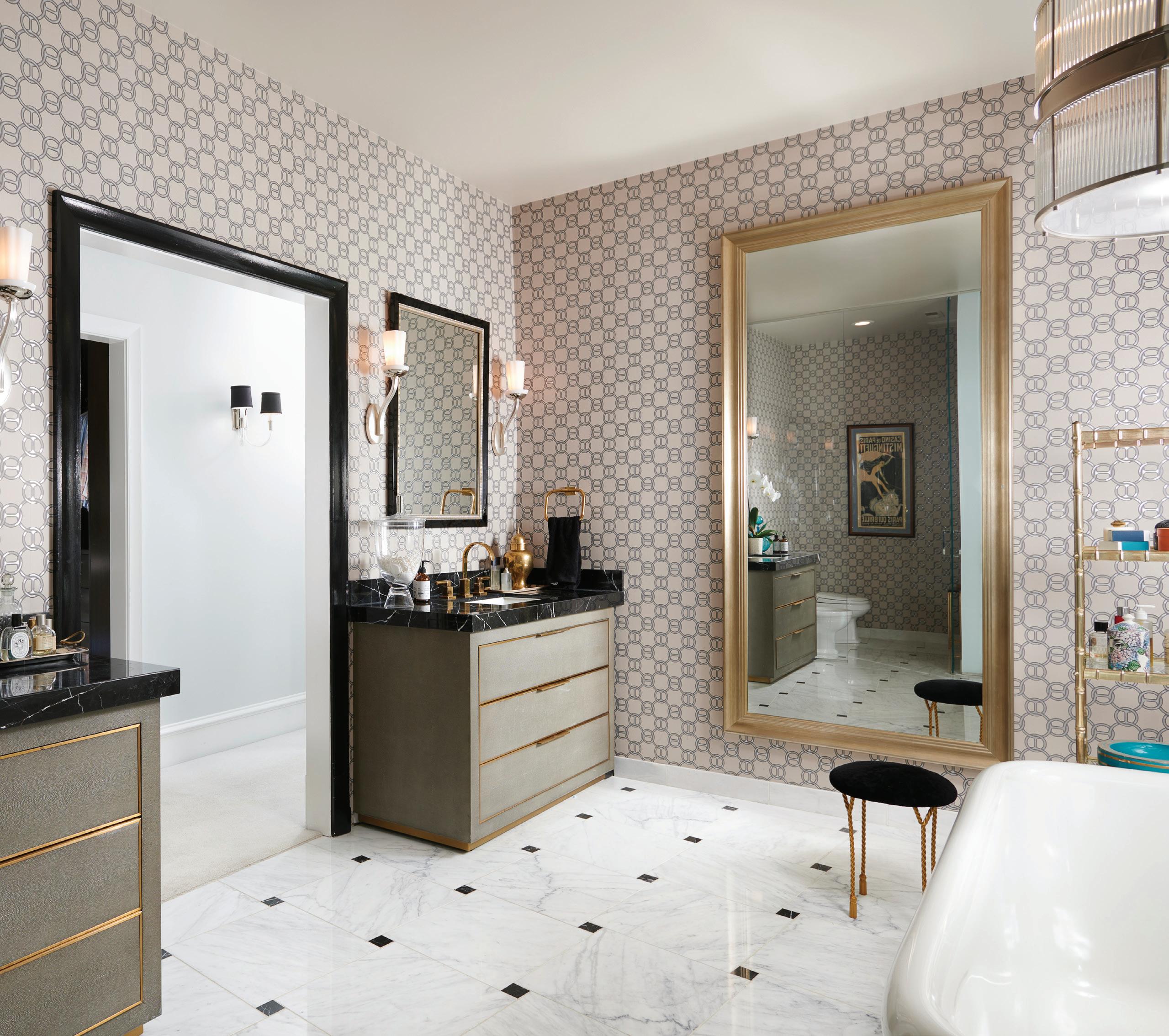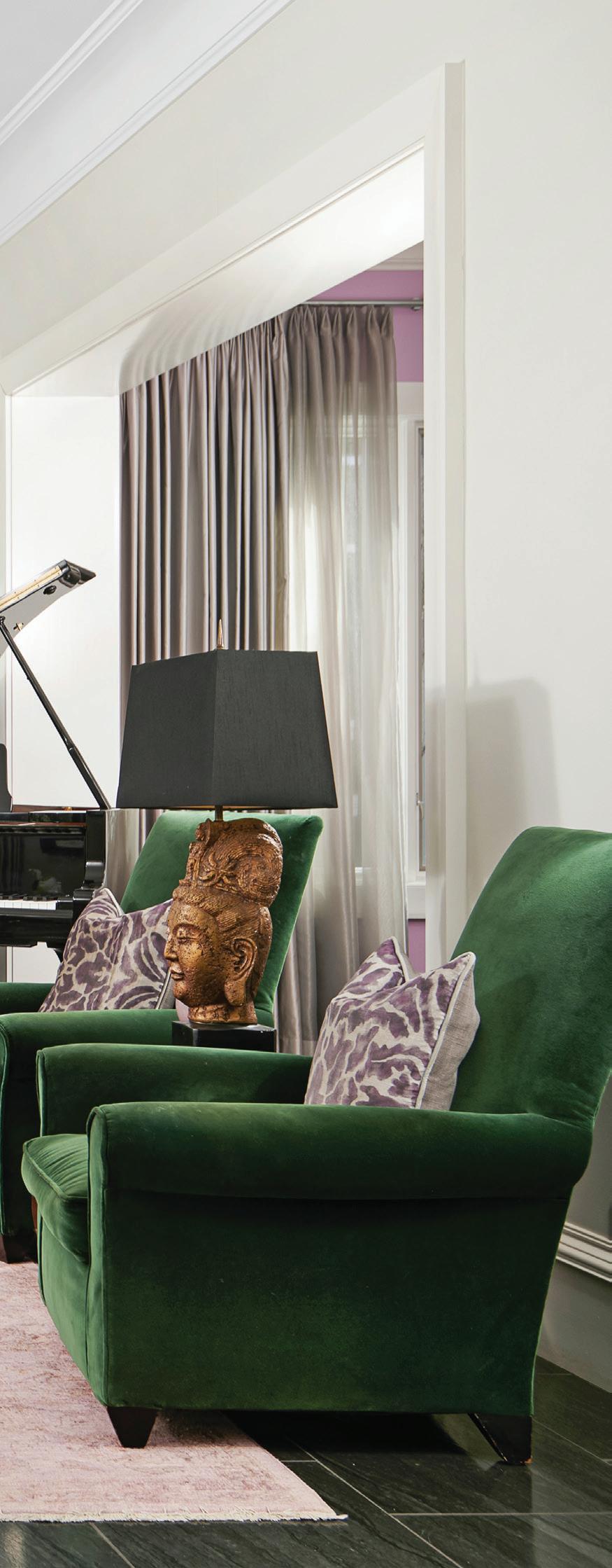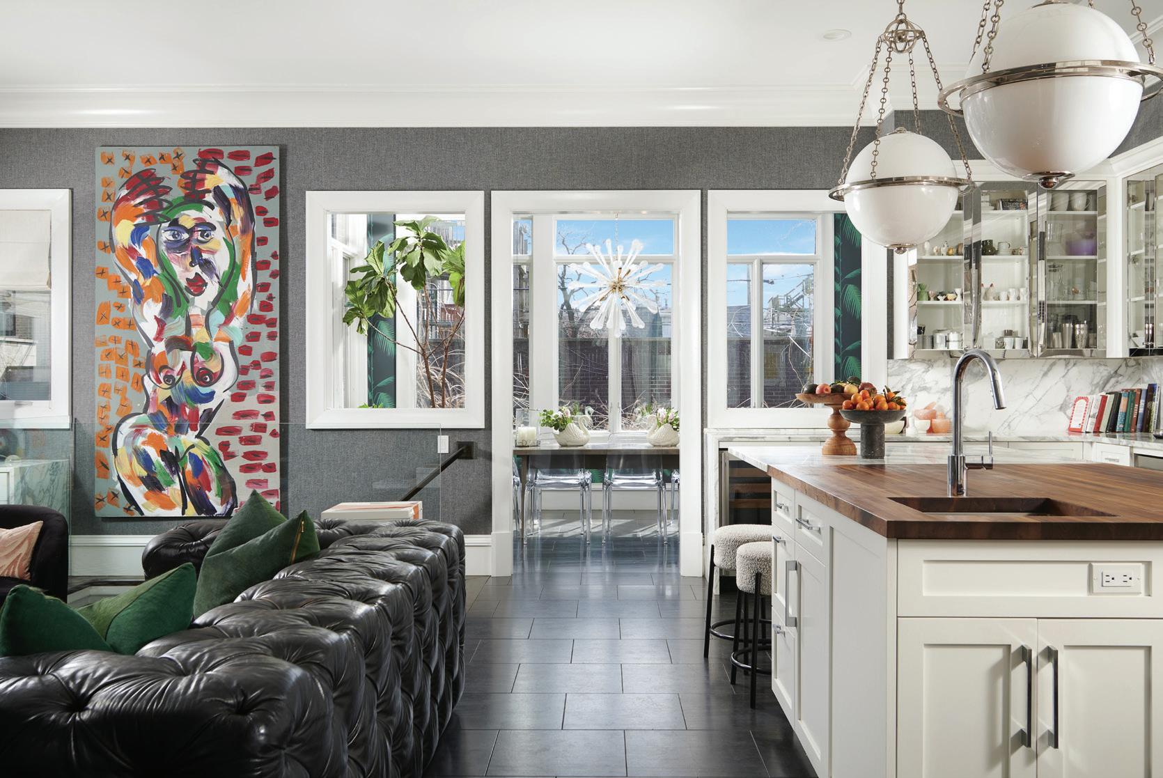 This custom 6-bedroom, 5.5-bathroom home has a chef’s dream kitchen, once featured in Wine Spectator, and is complete with a wood burning fireplace adjacent to the sunroom for casual dining when the formal dining room isn’t necessary. The second floor has the coveted 4 bedrooms while maintaining an impressive primary suite with a huge dressing room and a spa quality primary bath with dual vanities, Hermès wallcovering, heated marble floors, a freestanding tub, and steam shower. The lower level features an oversized great room with a media lounge, a wet bar with a Sub-Zero fridge and an ice maker, a gaming area, a spacious guest bedroom and full bath, a wellappointed home gym, storage closets with leather-wrapped doors, a wine cellar, a workshop, a mudroom and a full bath with a washer/ dryer for pool towels.